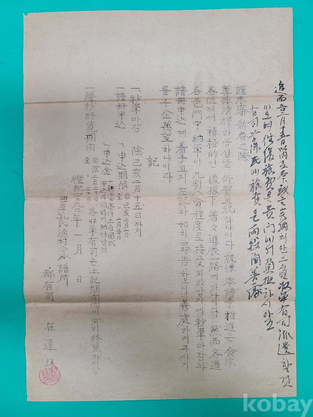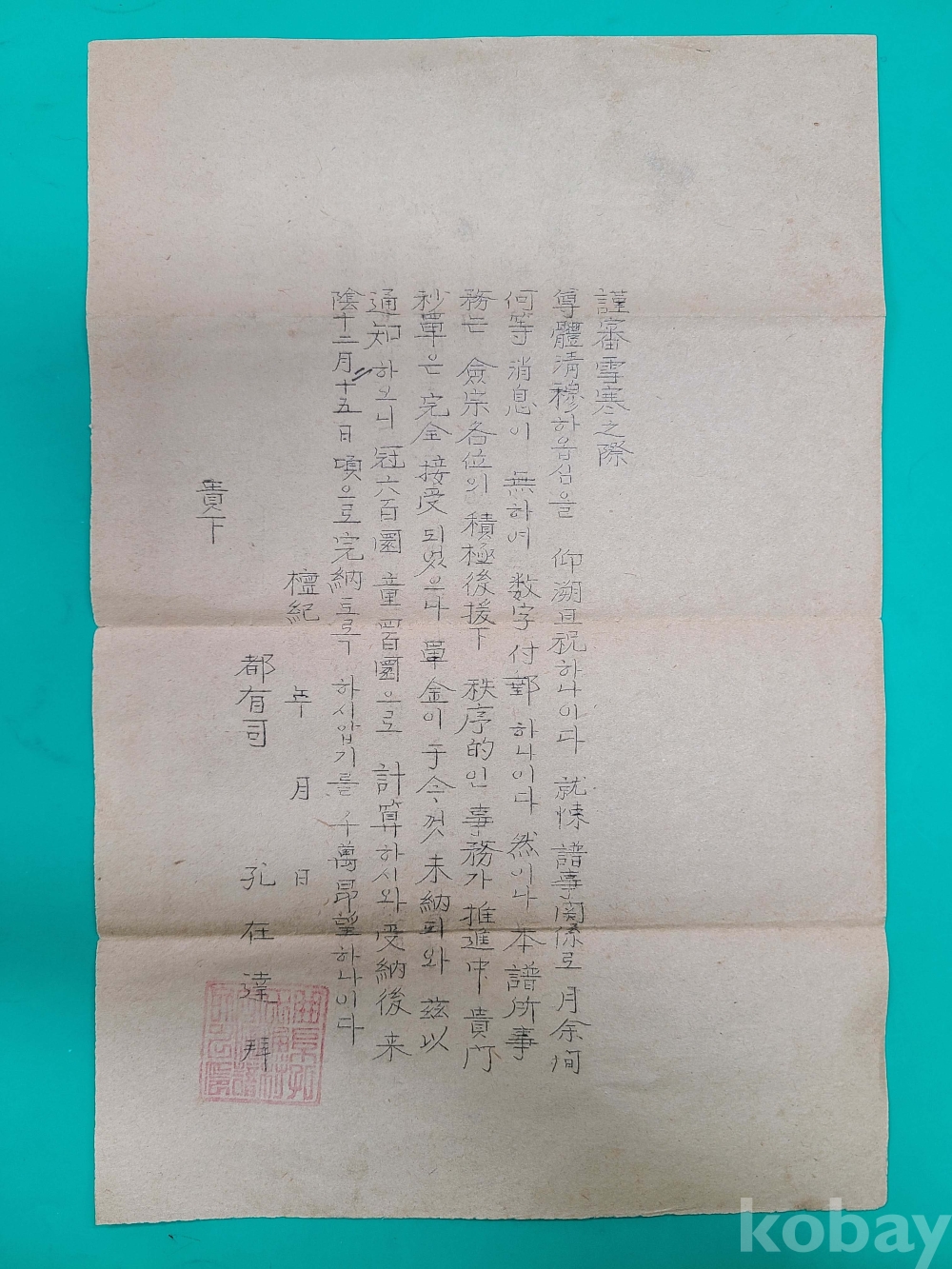 曲阜孔氏漁村公派 자료(문서,실체봉투 등)*경기도 평택