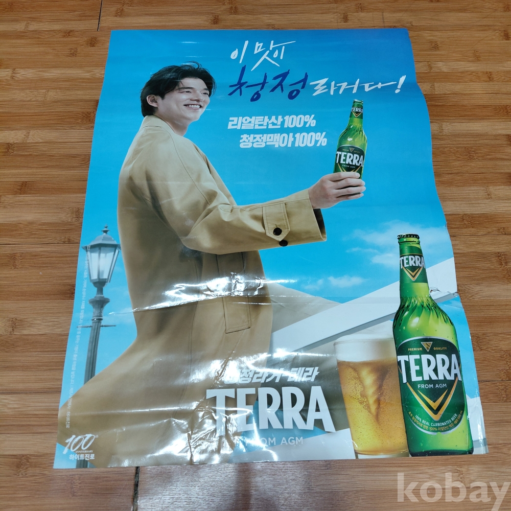 청정라거 테라맥주 연예인 광고모델 홍보 포스터 앞면갈라진곳있음ㆍ뒷면 테이프 자욱있음 예민한 분들입찰 정중하게 사양 부탁드립니다