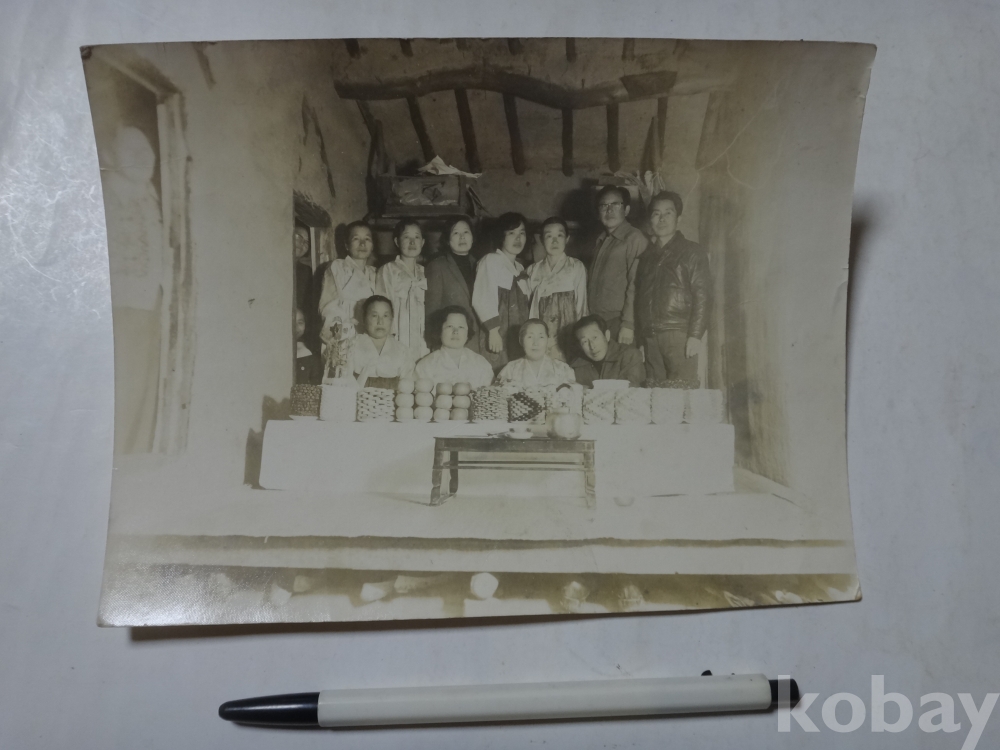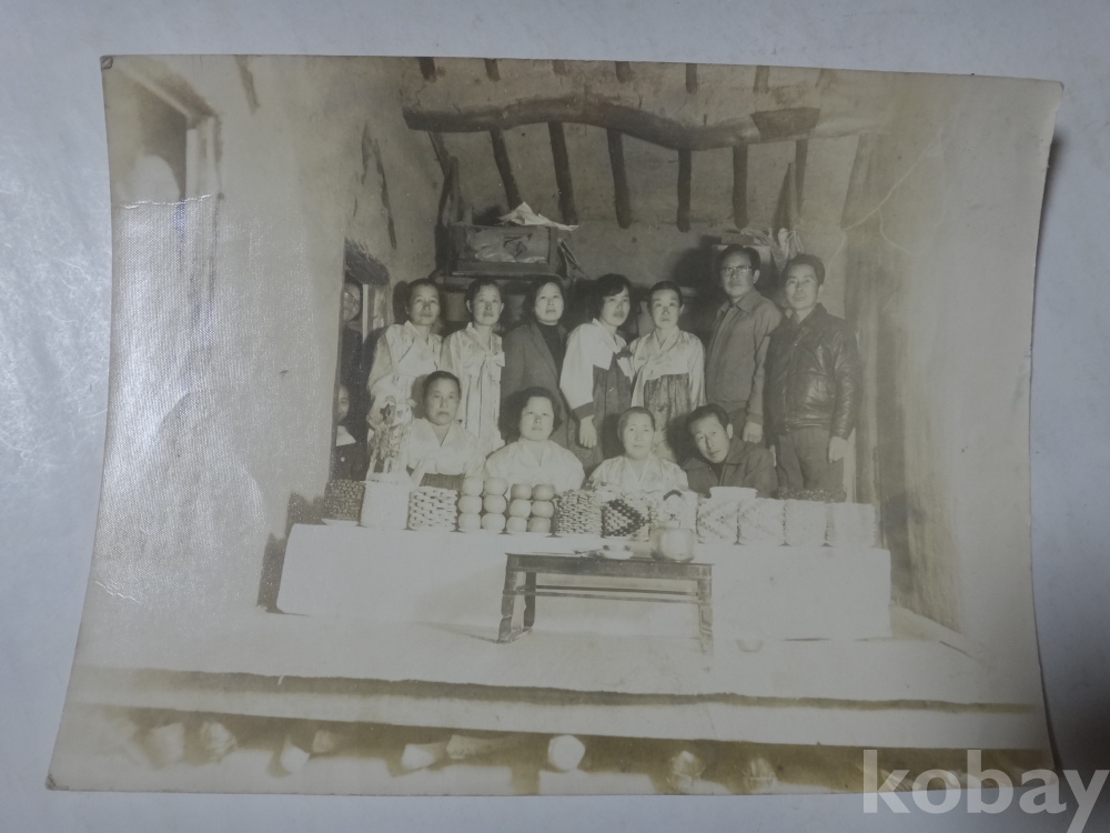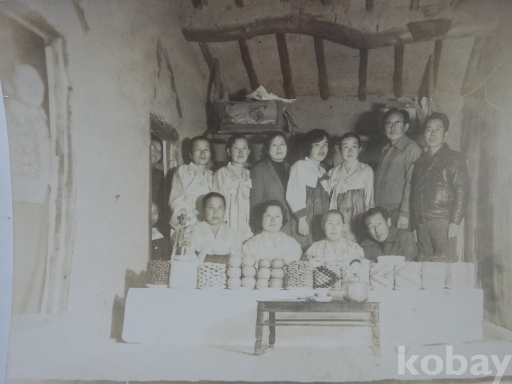(옛날) 회갑상 앞 - 자연목 서가래 지붕 아래 사진