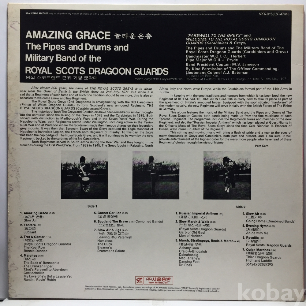 LP 82,400-69 Amazing Grace - The Pipes And Drums And Military Band Of The Royal Scots Dragoon Guards 자켓 EX 알판 EX+ 86 년 국내반