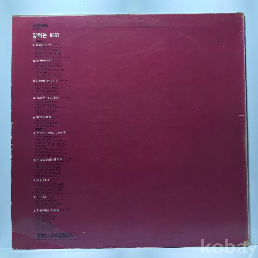 LP 29,300-5 양희은 베스트 - 들길따라서 . 77 서라벌 자켓 EX 알판 EX