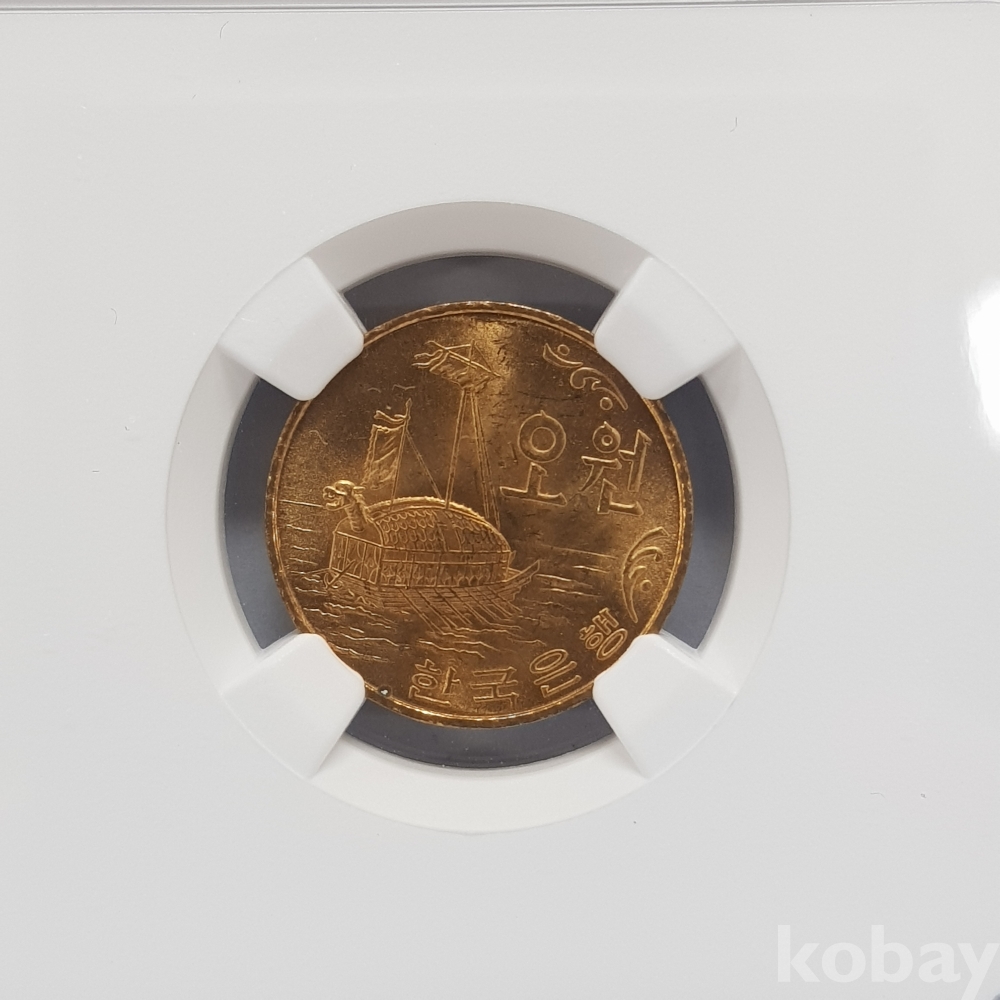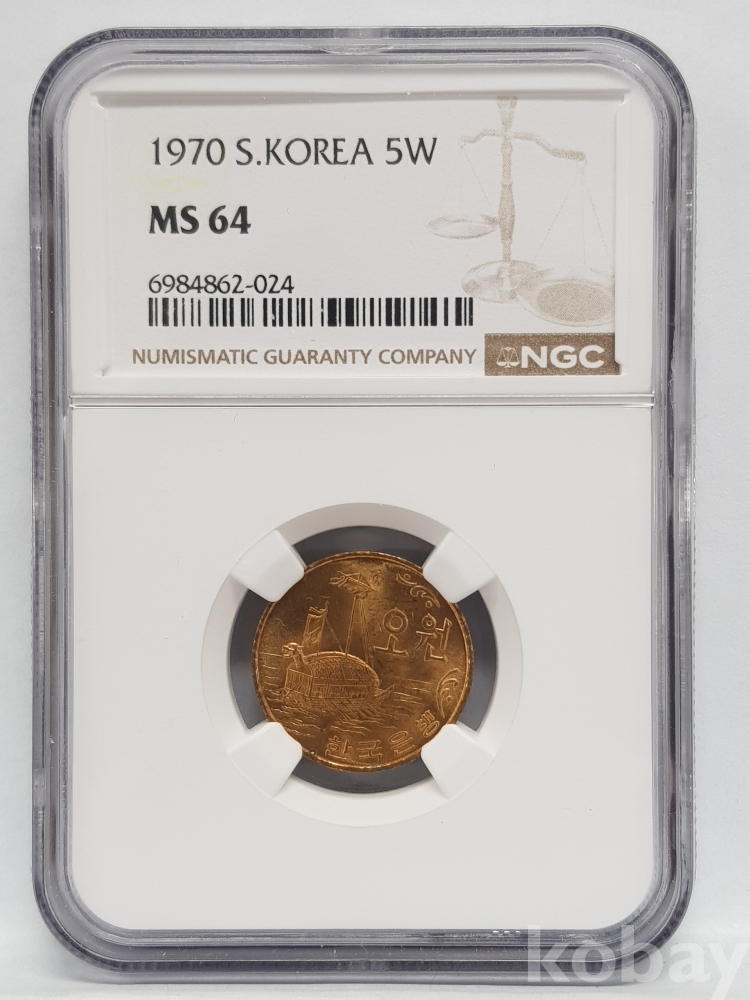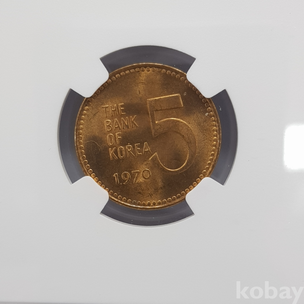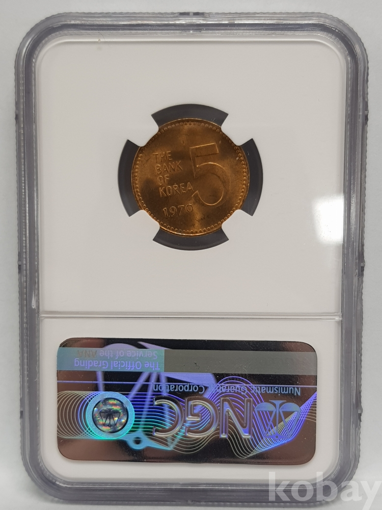 - 준특년도 1970년 5원 / 5주 적동화 NGC MS 64 그레이딩 인증 주화
