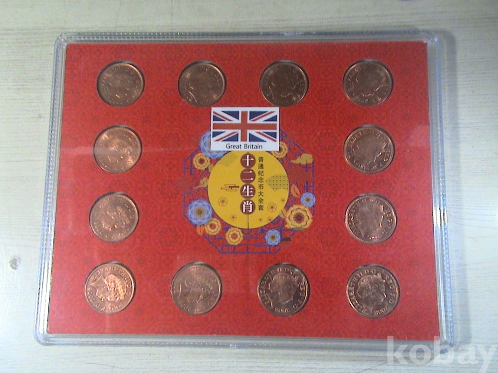 사진이미지와 같이 영국의 엘리자베스2세 전량 미사용급 2페니 12세트 주화집을 판매하며