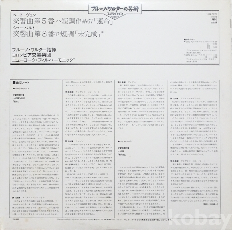 Bruno Walter - Beethoven / Schubert – Symphony No.5 In C Minor, Op.67 / Symphony No.8 In B Minor "Unfinished"