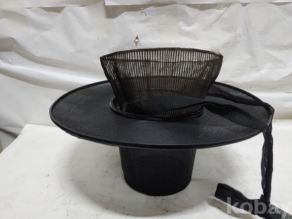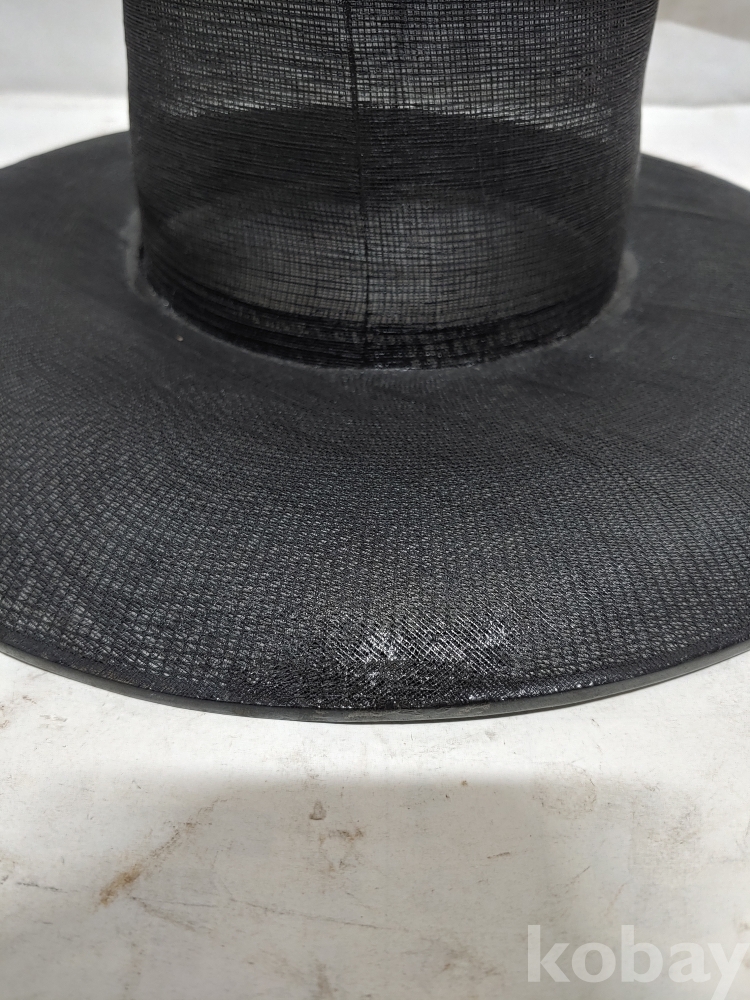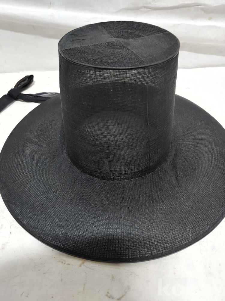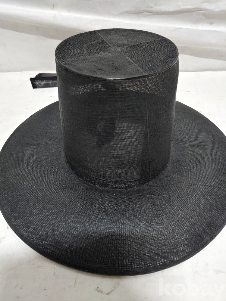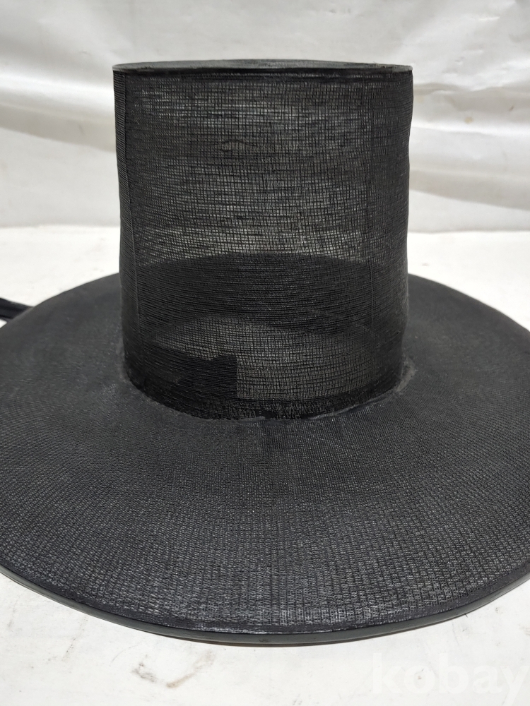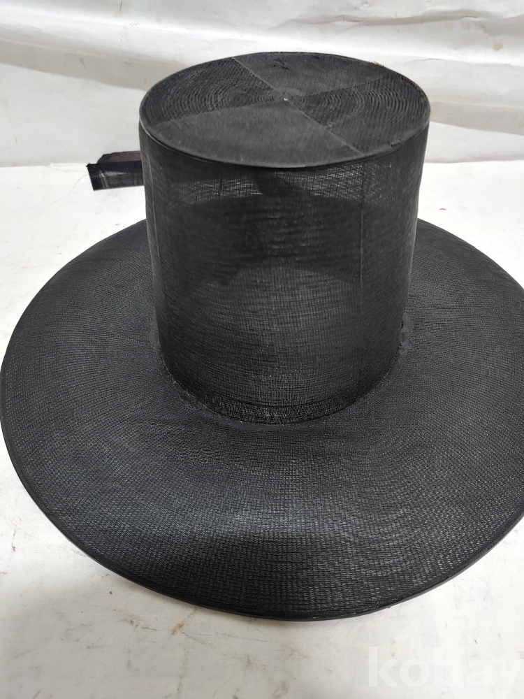 ...말총 갓의 바깥부분에 수리를 하면서 전체적으로 다시 취색이 되어 있으며 갓머리에 수리가 있으며 갓기둥의 하단에 수리와 갓의 테두리에 수리가 된 부분이 있으나 상태는 깨끗 함