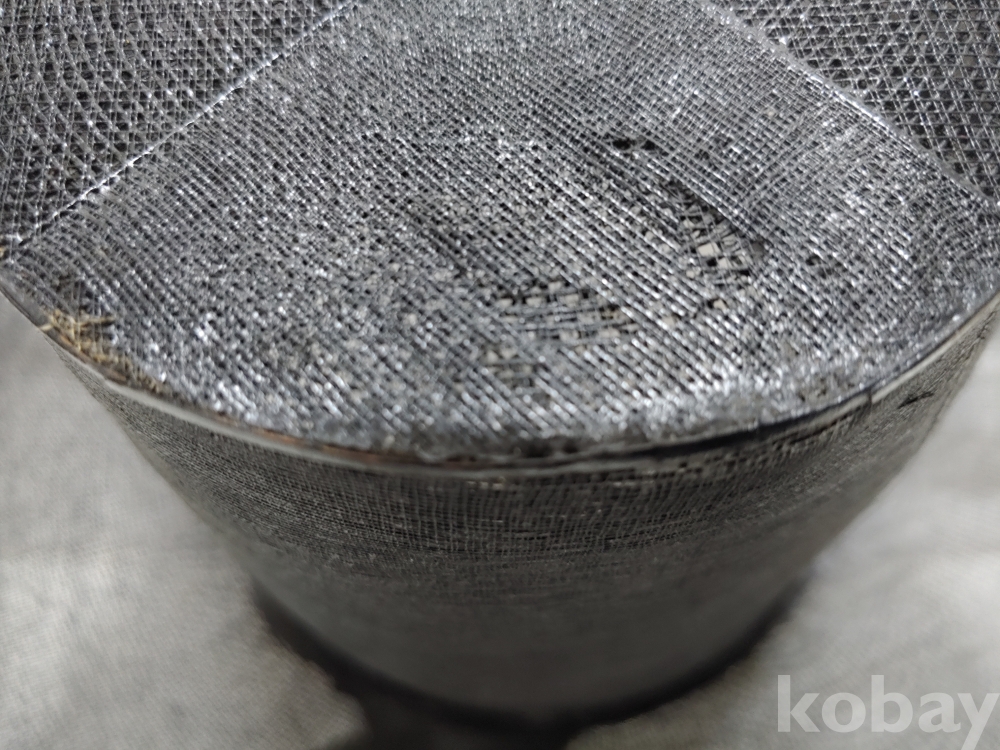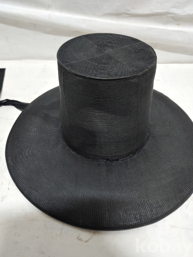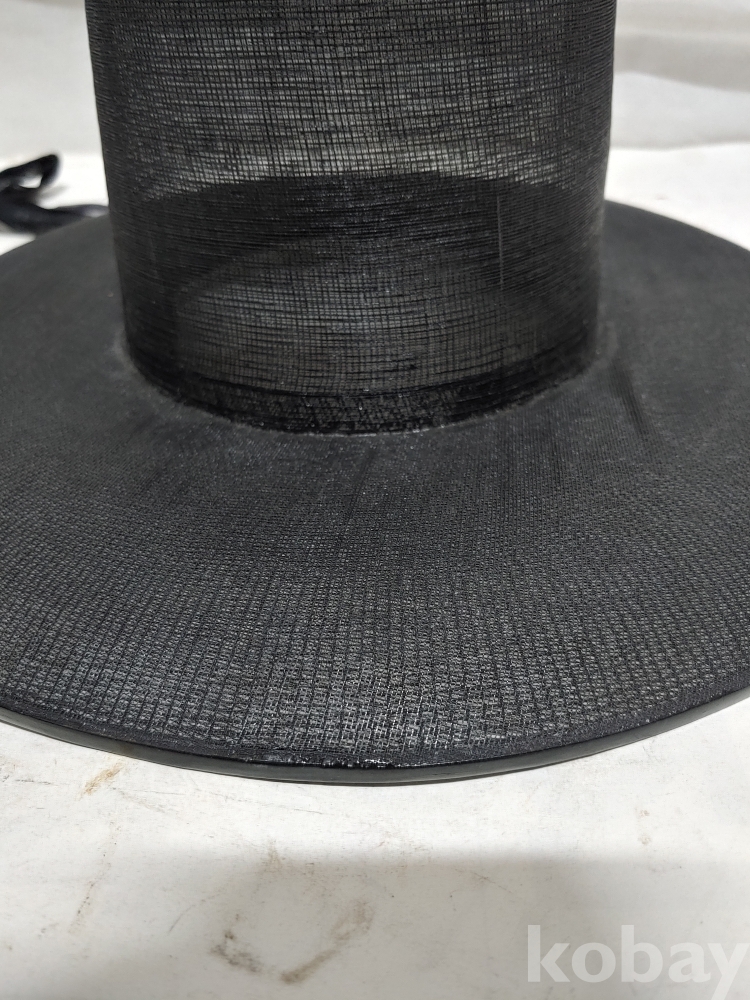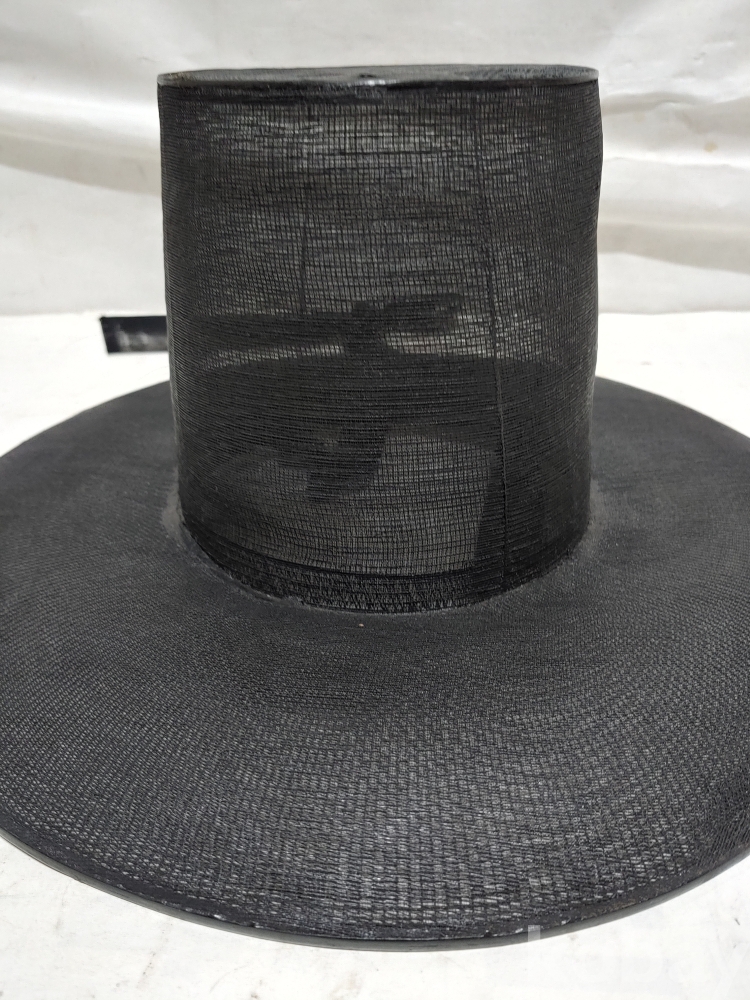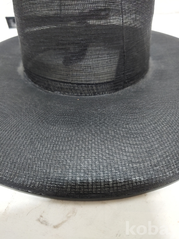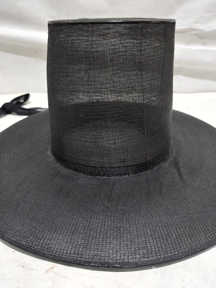...말총 갓의 바깥부분에 수리를 하면서 전체적으로 다시 취색이 되어 있으며 갓머리에 수리가 있으며 갓기둥의 하단에 수리와 갓의 테두리에 수리가 된 부분이 있으나 상태는 깨끗 함