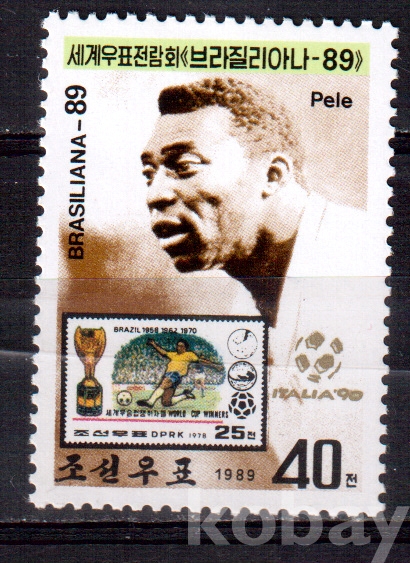 (축구, 인물) 북한 1989.7.28 세계우표전람회 <<브라질리아나 '89>> 1완 MNH