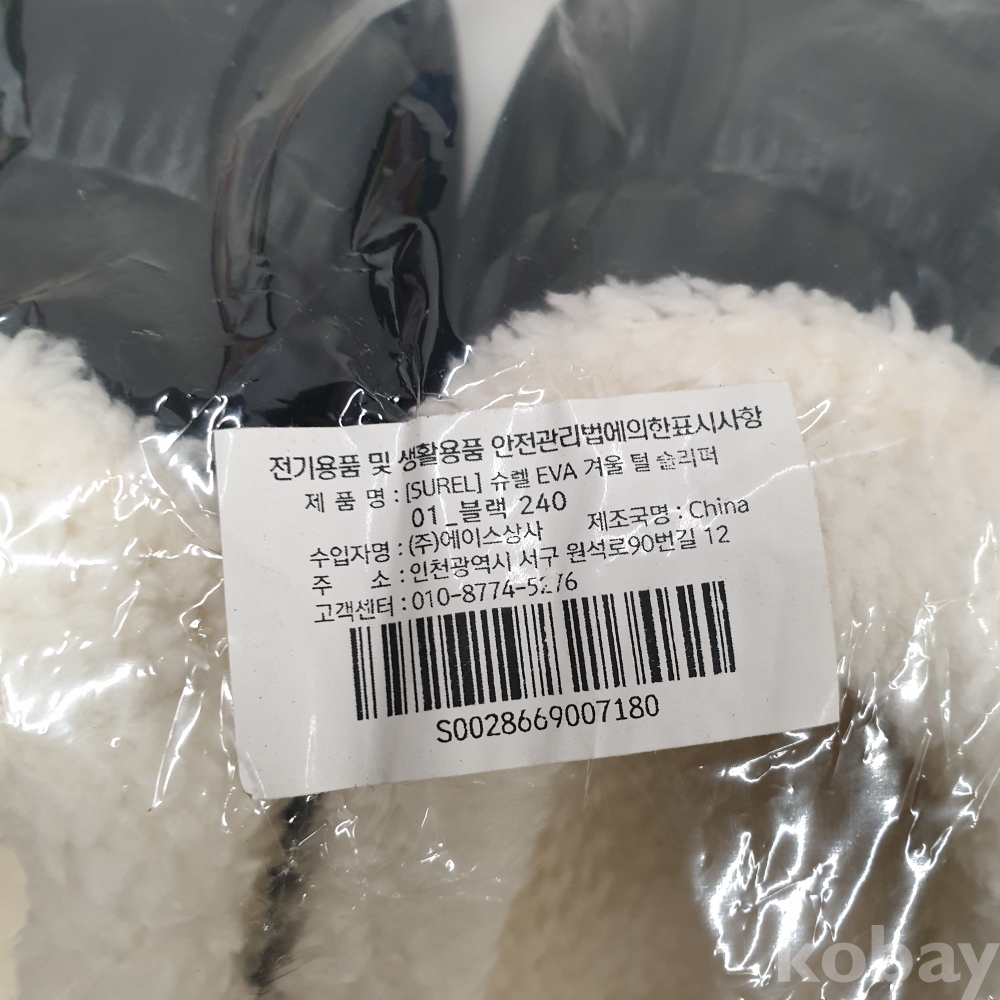 [천원경매] 12-0134 겨울 털 슬리퍼 (블랙 240 , 미개봉)
