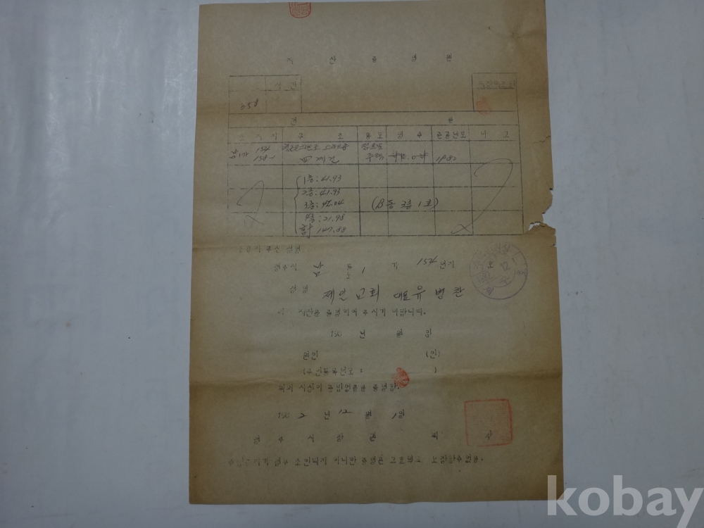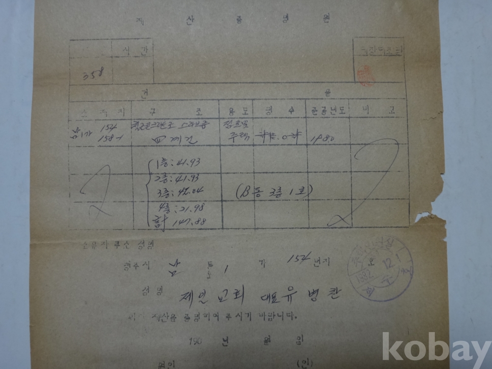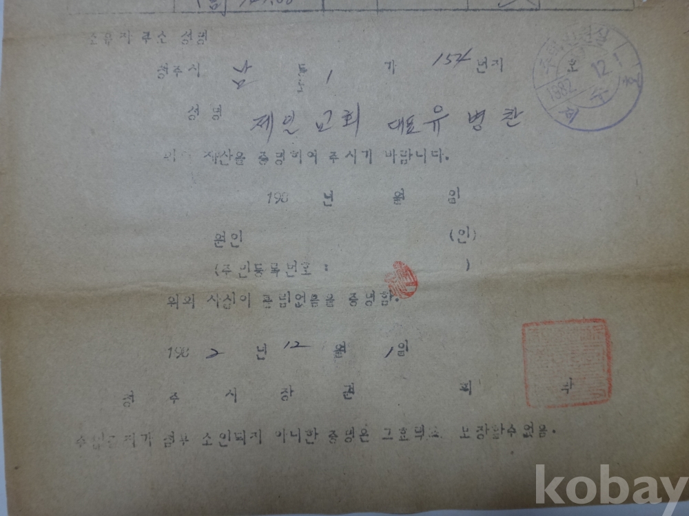 (청주시수입증지 여러점 첨부) 청주 제일교회 - 재산증명원(1982년