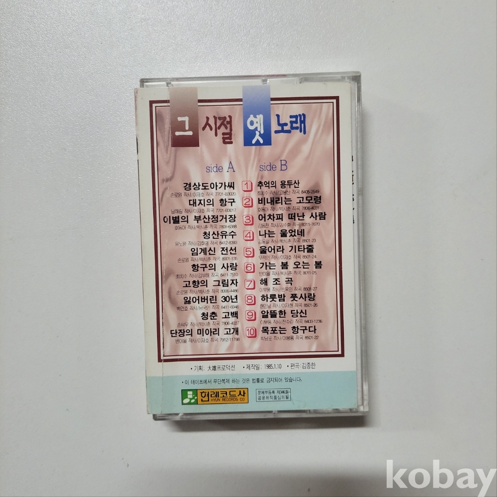 [카세트테이프] 그 시절 옛 노래 1집 ; 상태 양호 준수