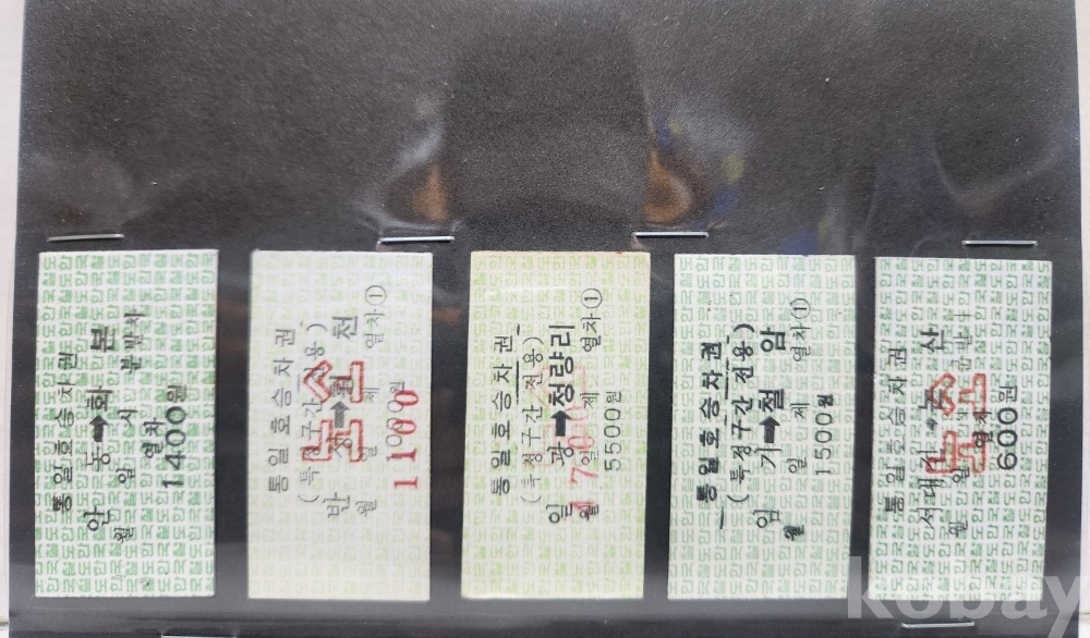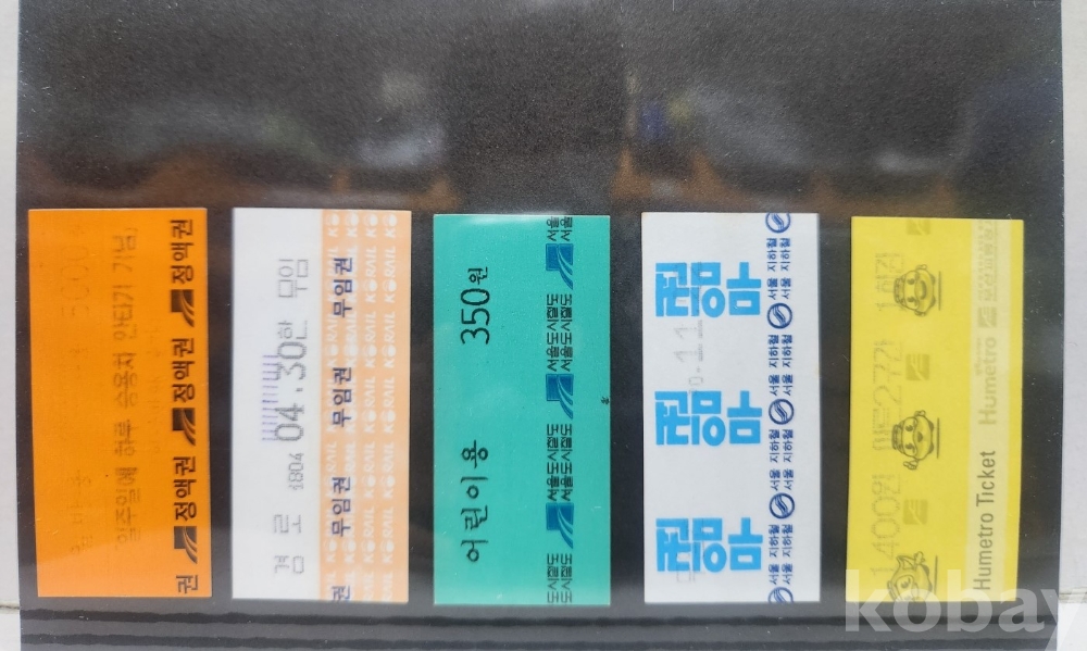 -기차, 지하철, 버스표등 다양합니다.