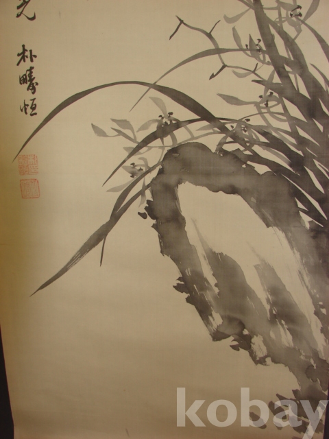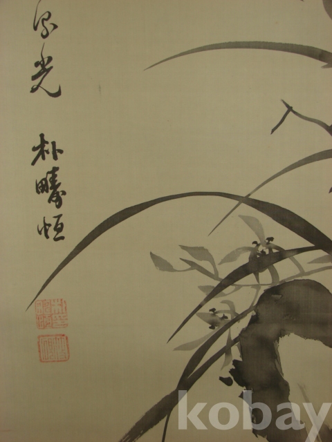 호운 박주항(湖雲 朴疇恒)의 비단에 그린 묵화 대형 석란도(143×43)입니다.