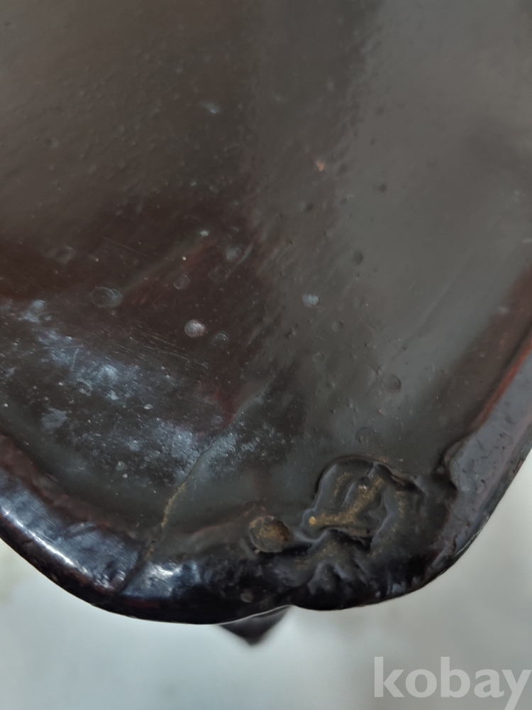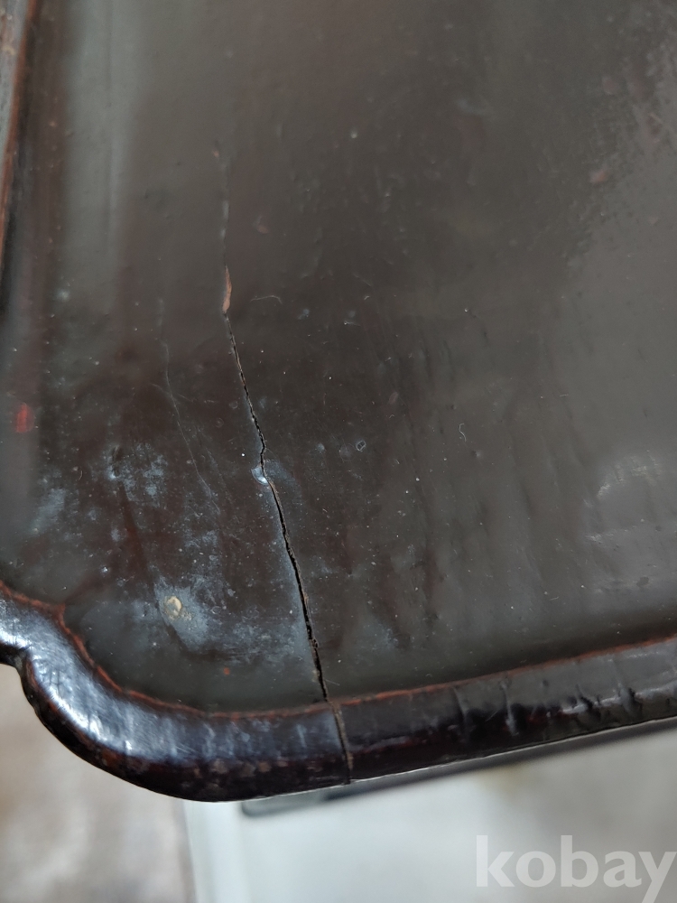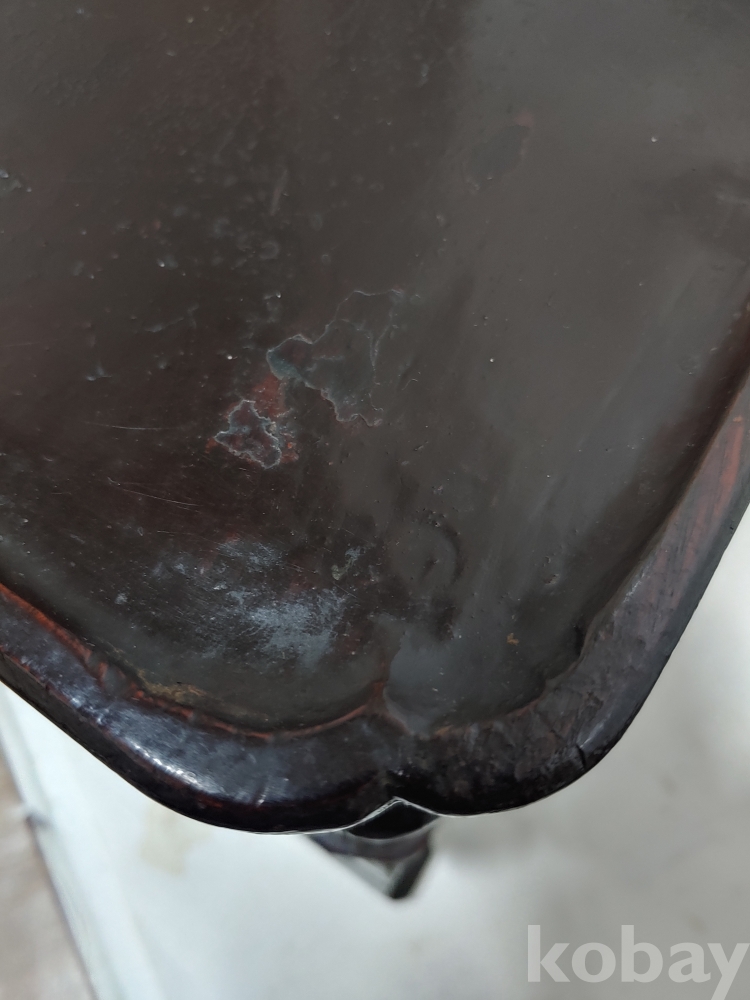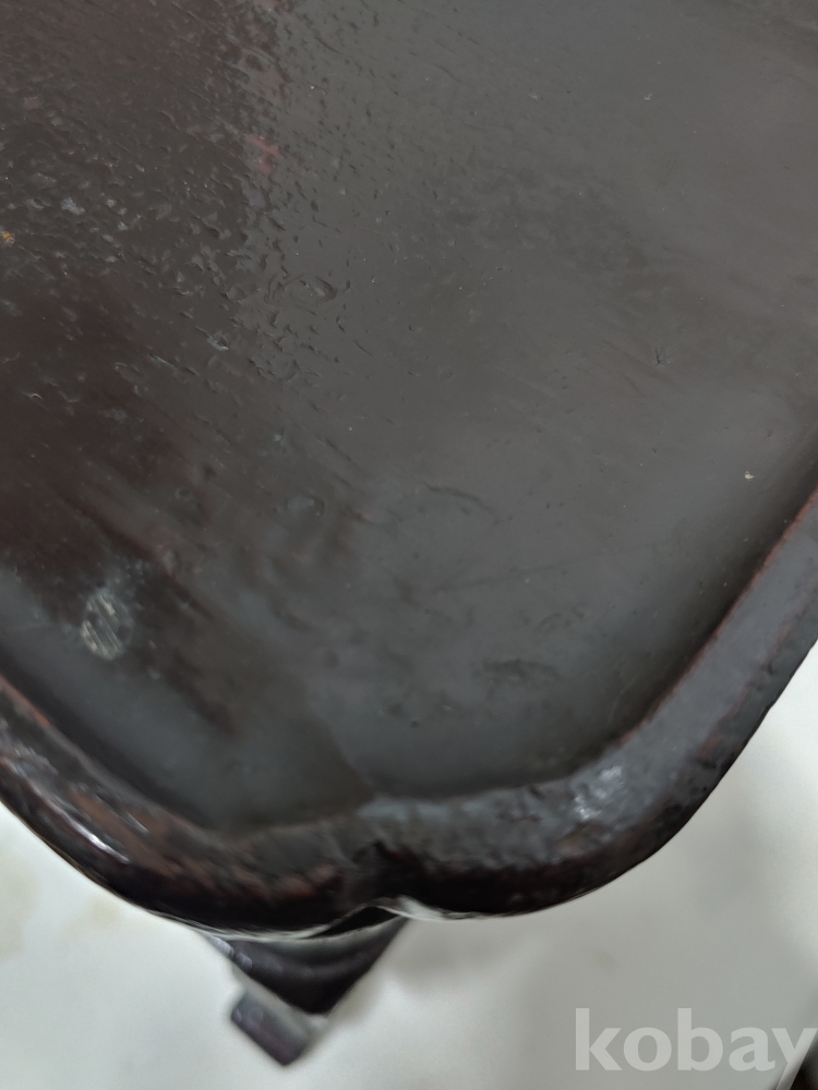 상판의 모서리에 2곳에 유가 있으며 상판은 후대에 칠을 다시한번 한것이며 조금 균형이 맞지 않으오니 참고로 하시고 신중한 입찰을 부탁 드립니다