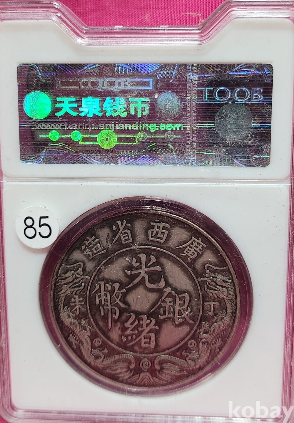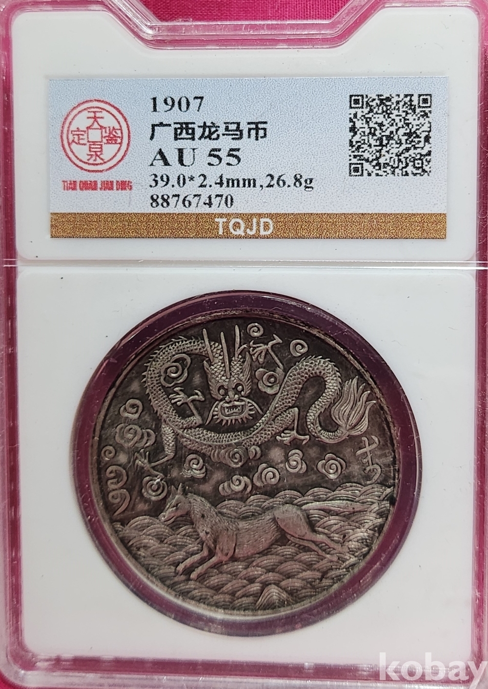 1907년 큐알코드(QR CODE)가 함께하는 은색 광서원보 (光緖元寶) 화패로 밀봉된 상태입니다,