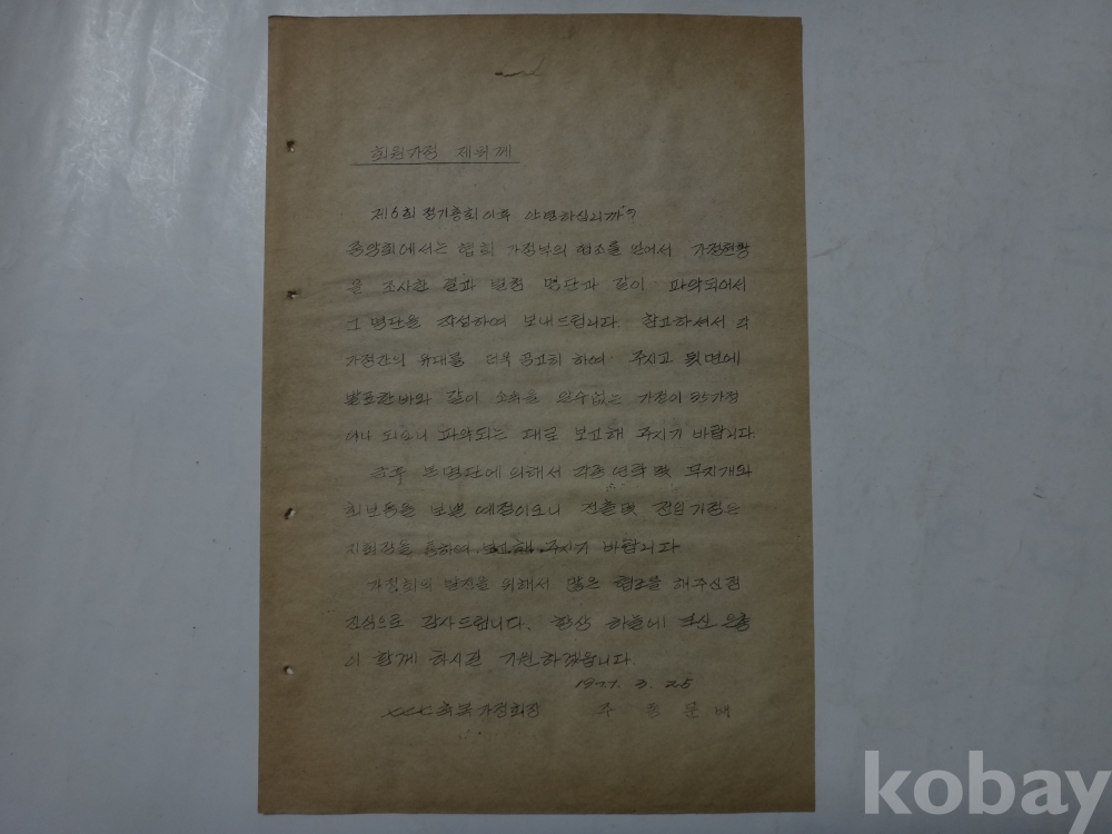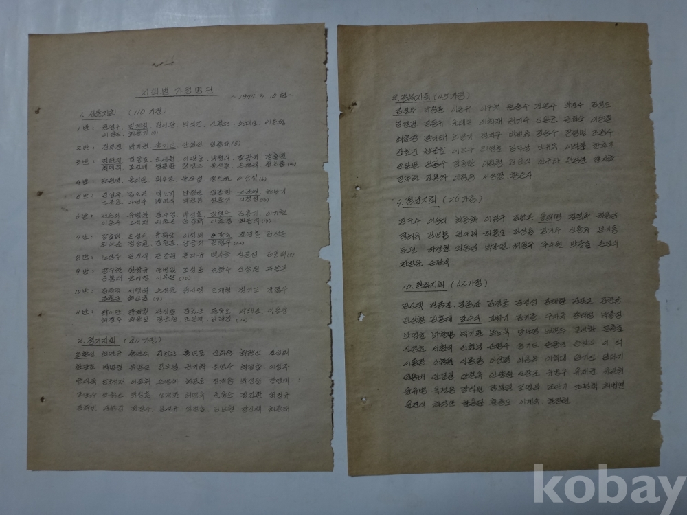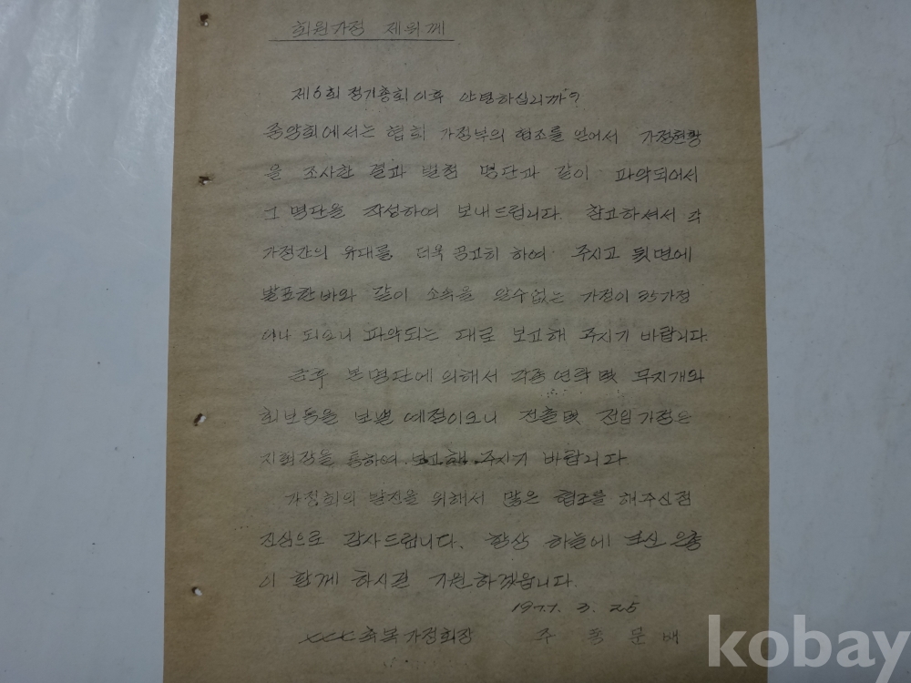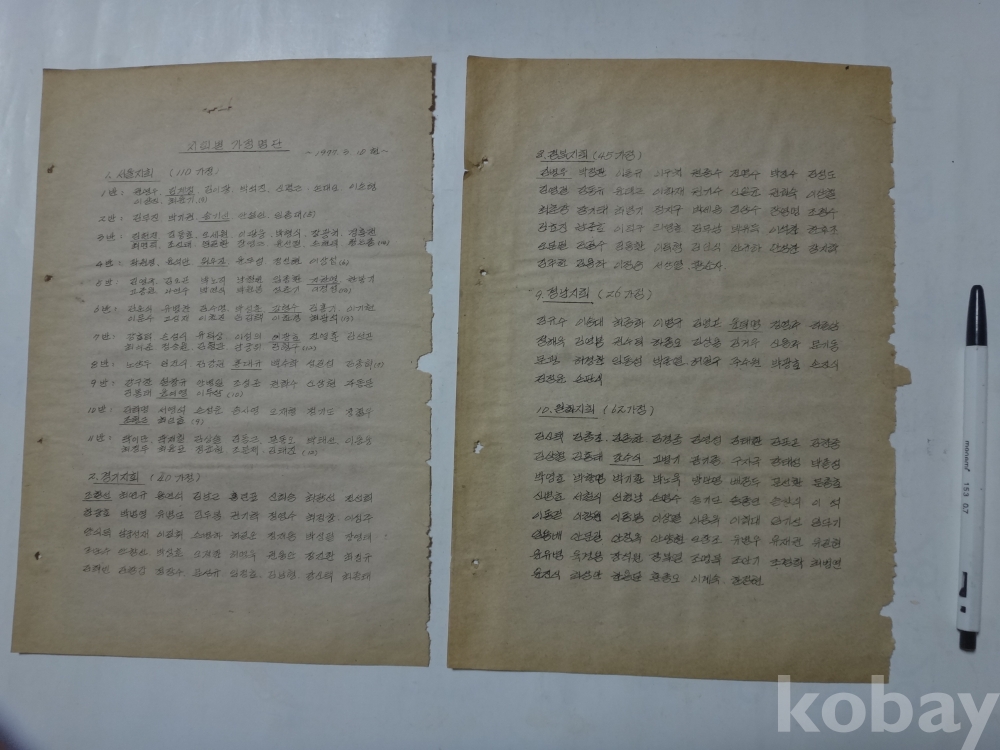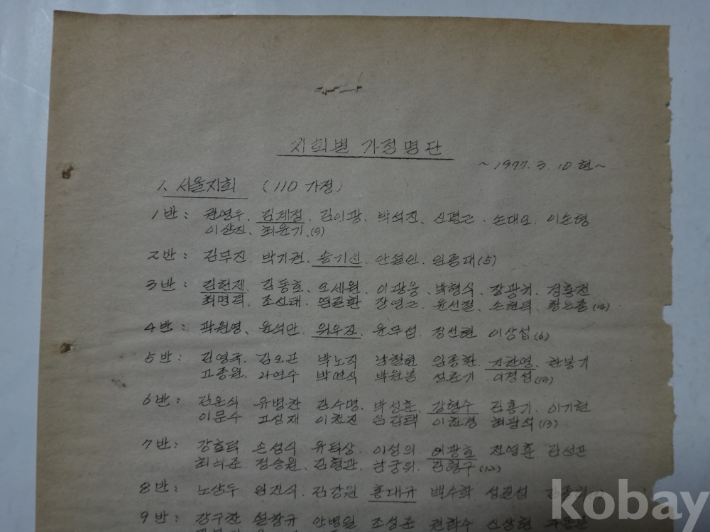 가정현황 명단 통보 - 지회별 가정명단 첨부 (1977.3.10현~ 한국 777 축복 가정회장)