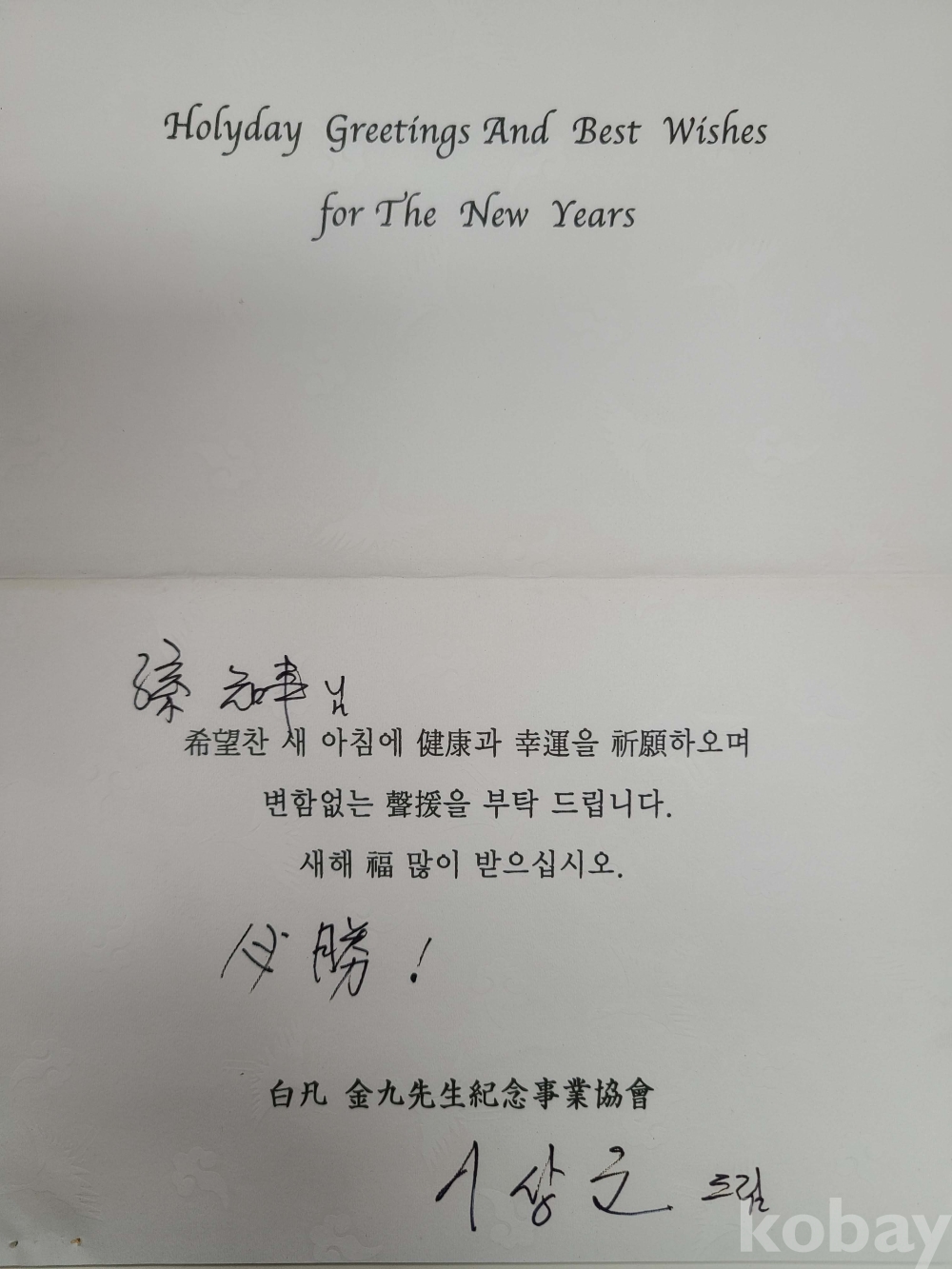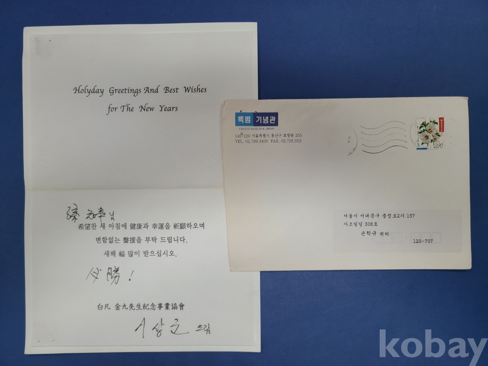 백범 김구선생기념사업협회 연하장(실체봉투)/손학규에게 보냄