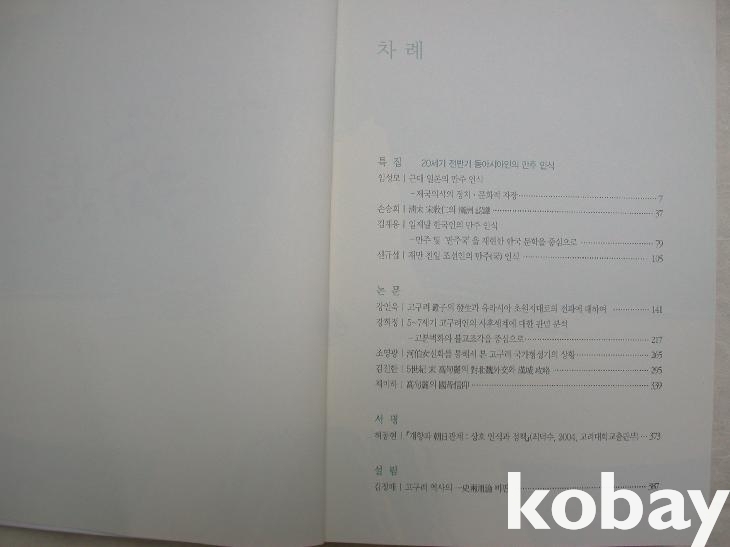 바로 <차례>가 나오고 본문이 시작된다. 특집으로 '20세기 전반기 동아시아의 만주 인식'을 주제로 4편의 논문이 실렸고, 일반논문 5편 및 서평 등이 있다.