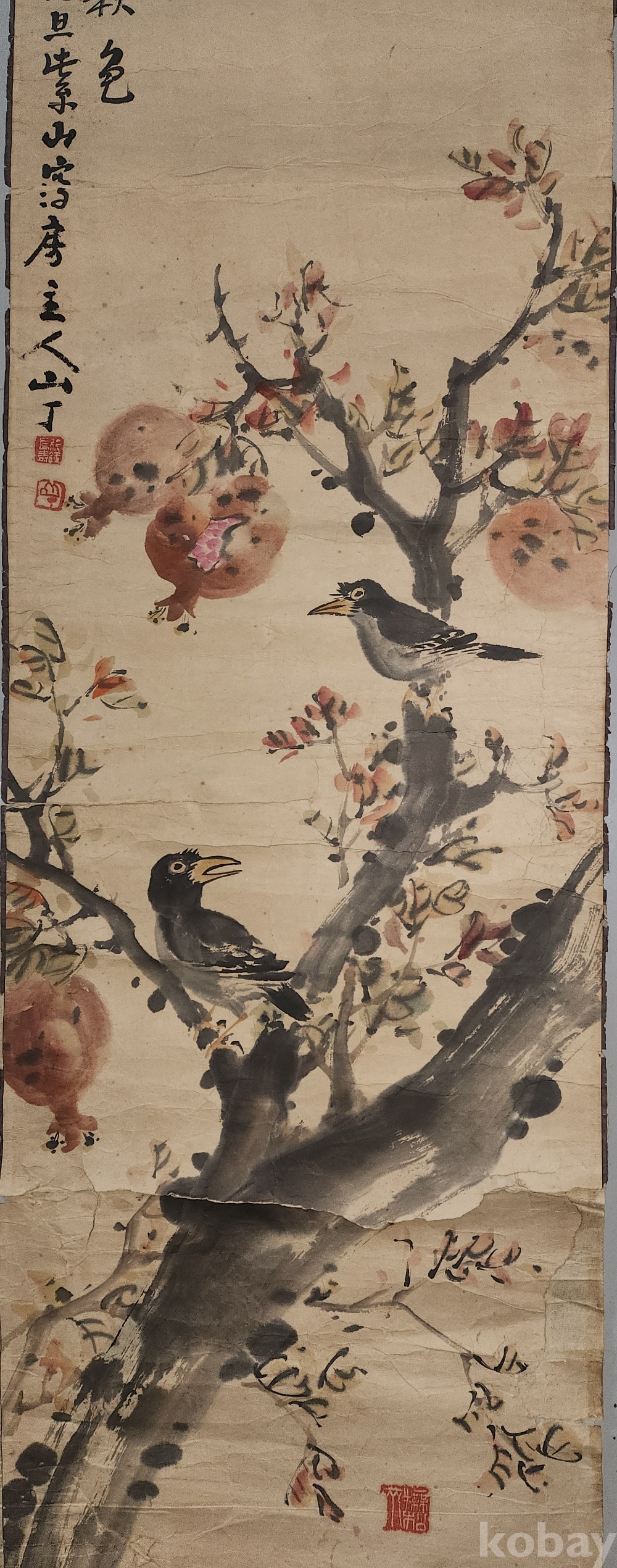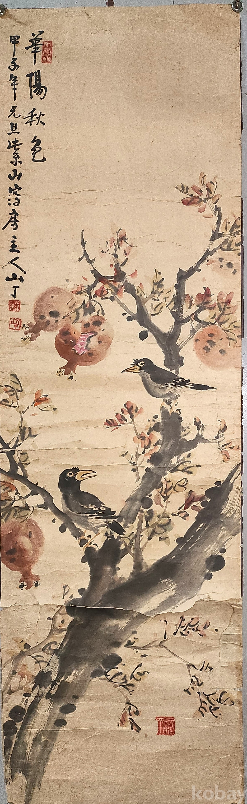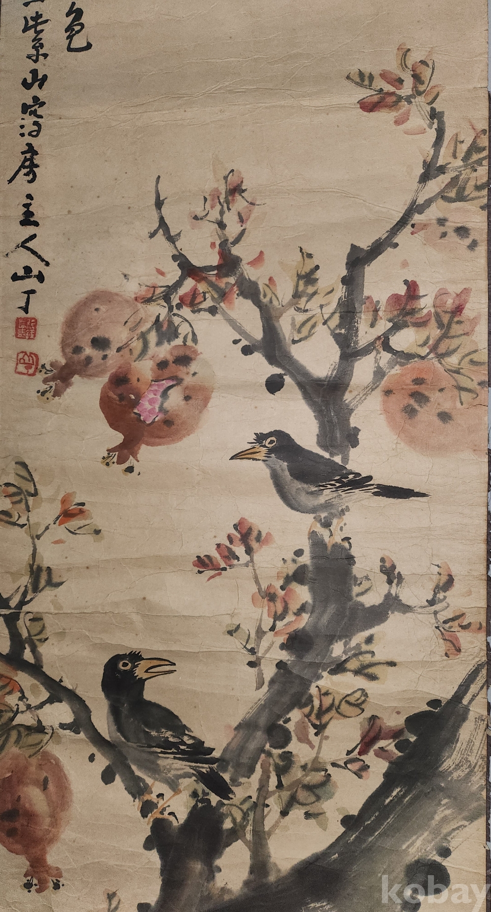 유명화가 산정 (山丁) 서세옥 (徐世鈺) 作 석류와 까치 그림입니다,