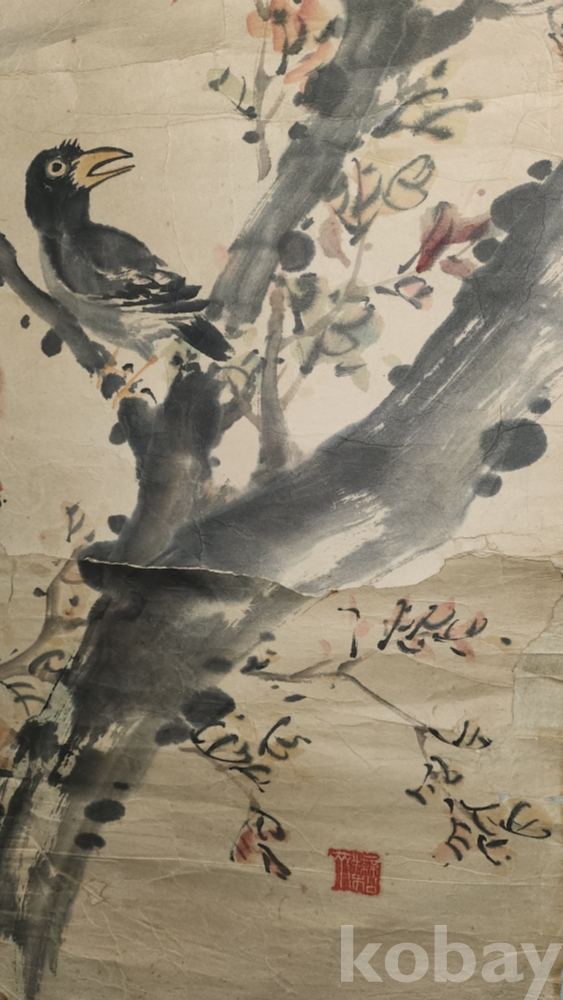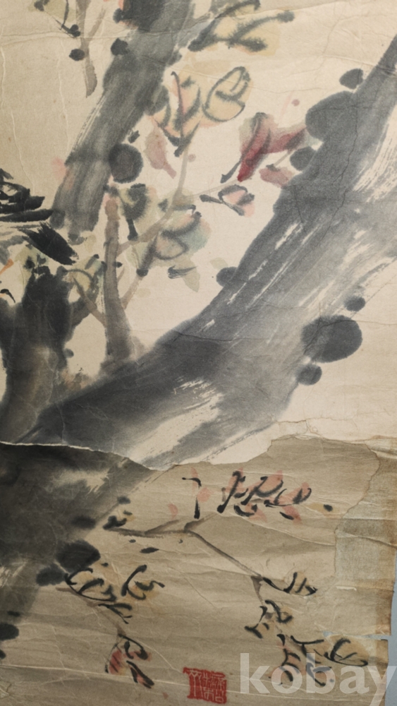 테두리 찢어짐과 하단부에 꺾임도 보이는 상태 불량한 작품입니다,