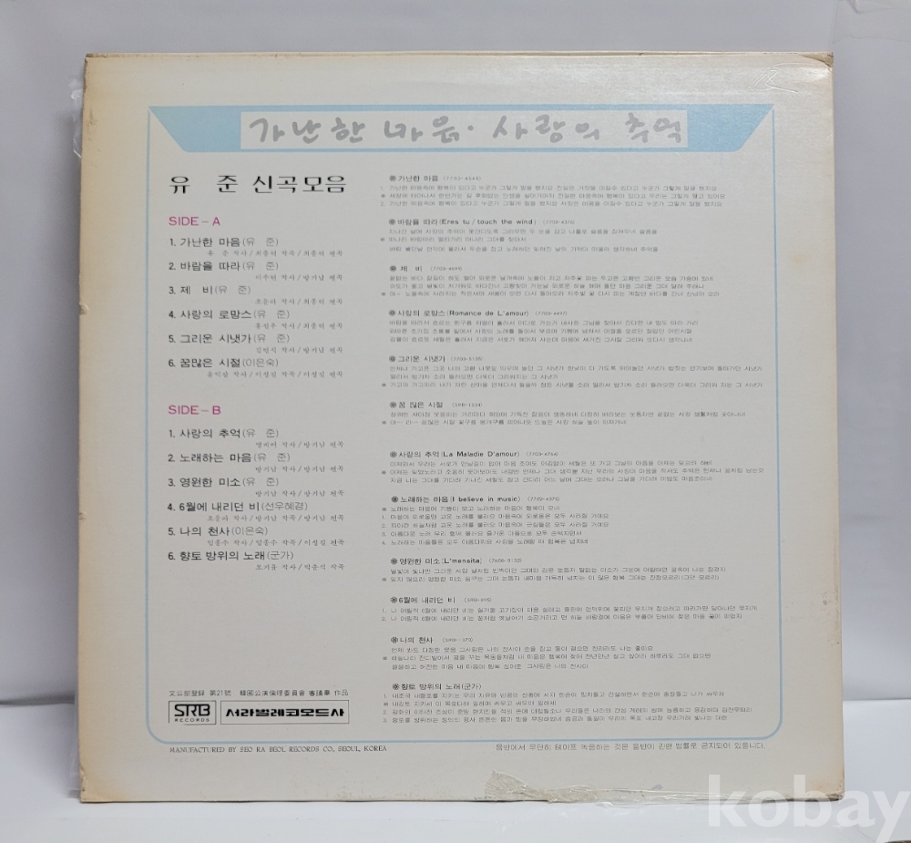 커버 : EX / 음반 : EX / 인서트 없음 / 발매 : 서라벌 1977