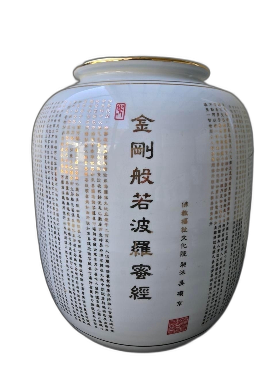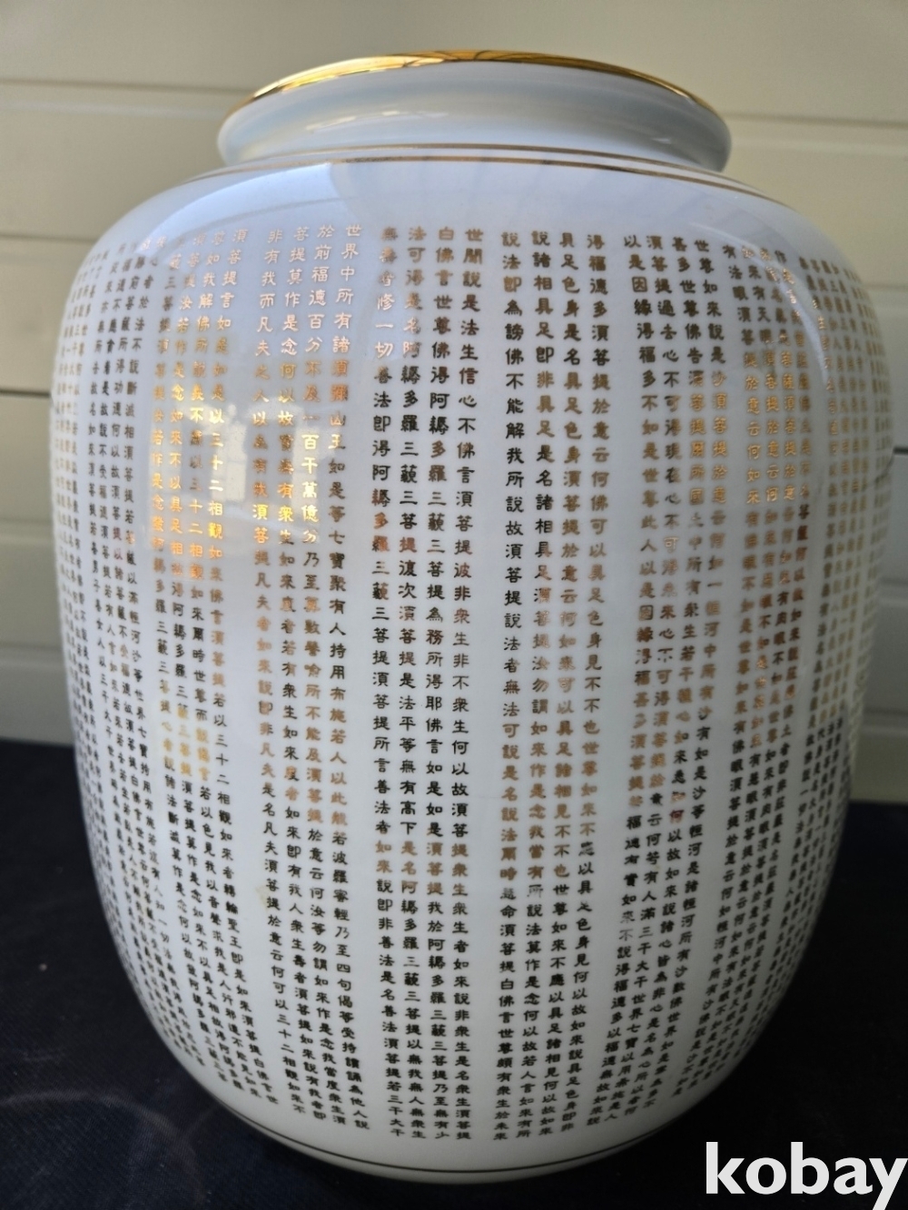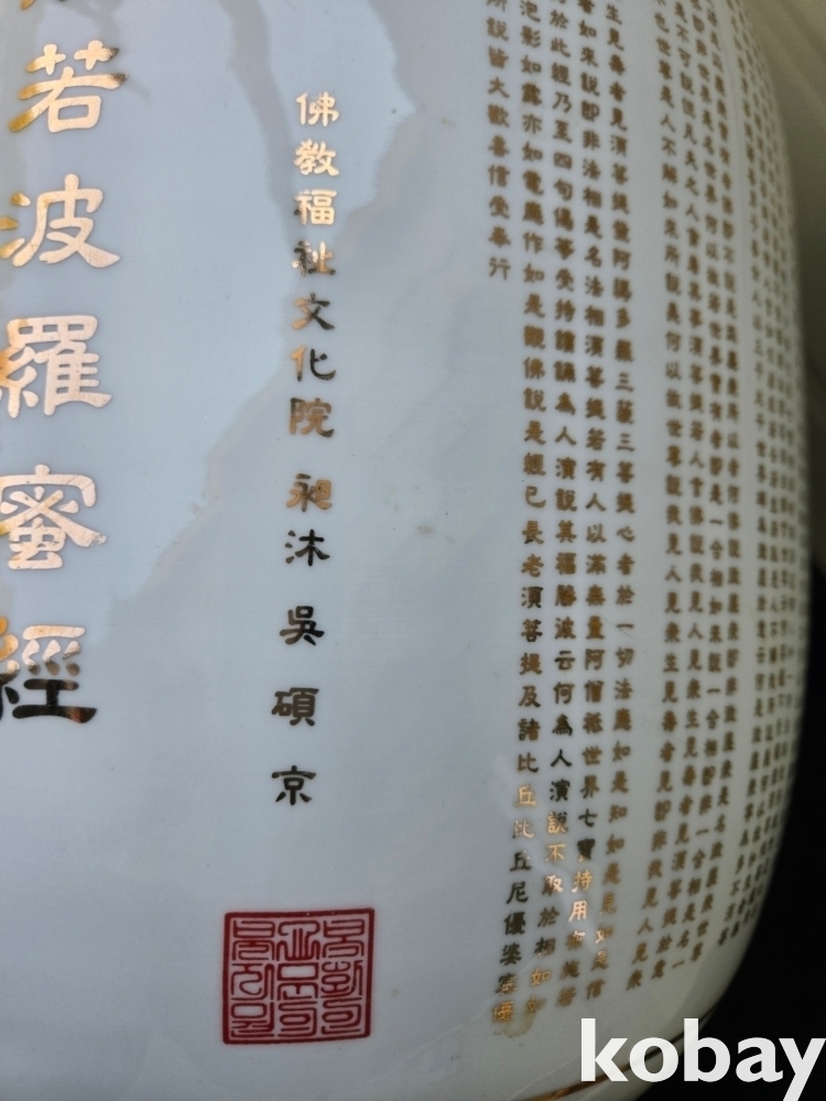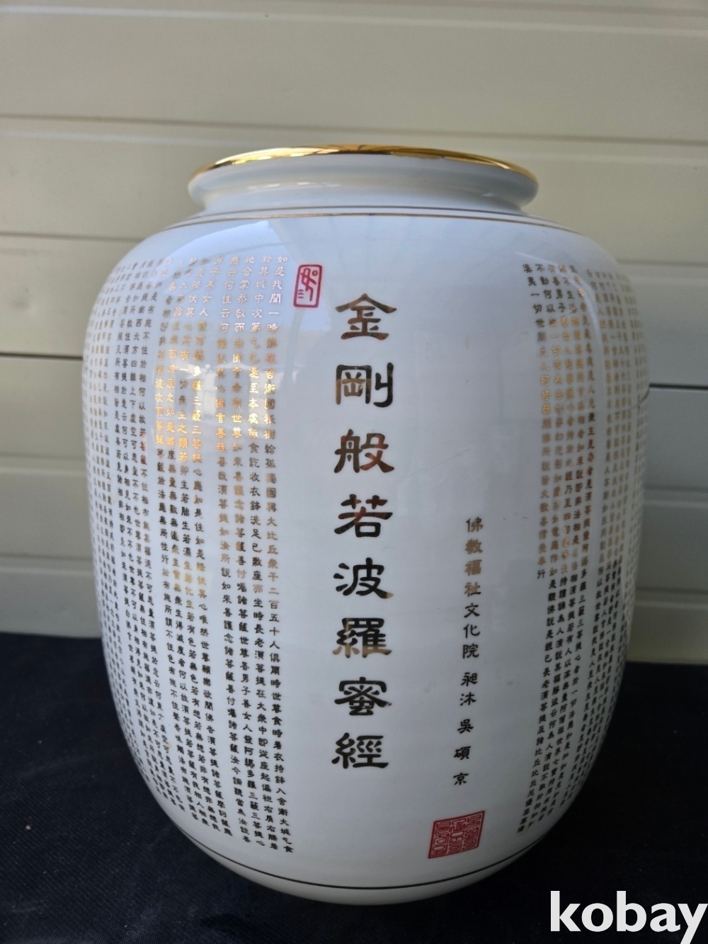 금강경의 본래 이름인 금강반야바라밀경(金剛般若波羅蜜經) 금분 글씨 도자기 입니다.
