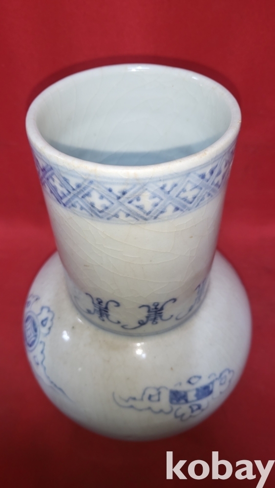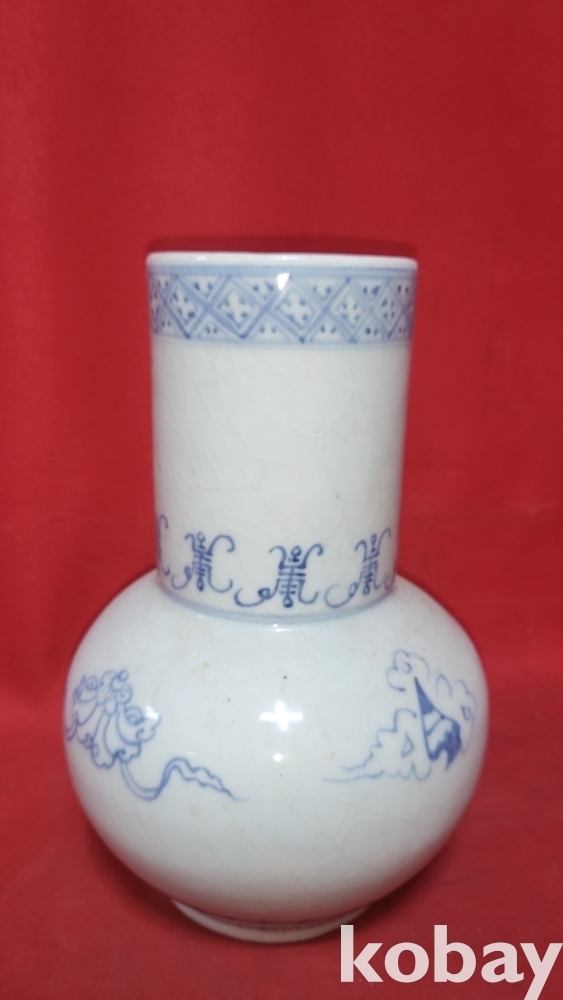 1세대 도예가 호산 안동오 作 청화백자 칠보문영 광구병입니다,
