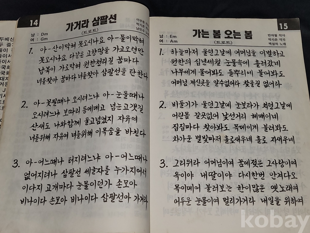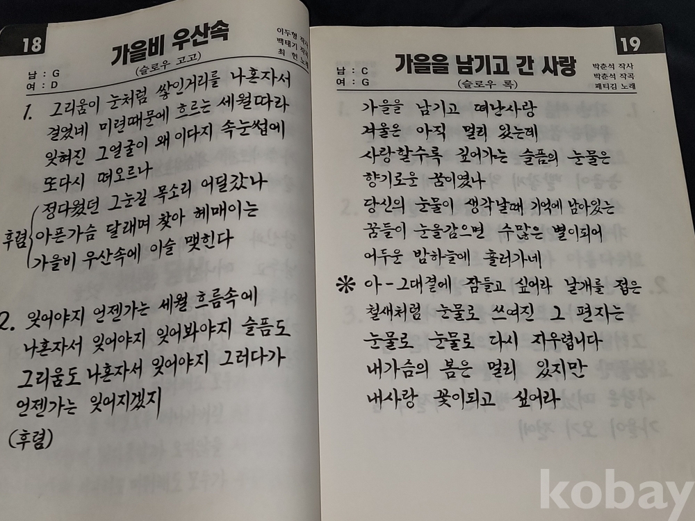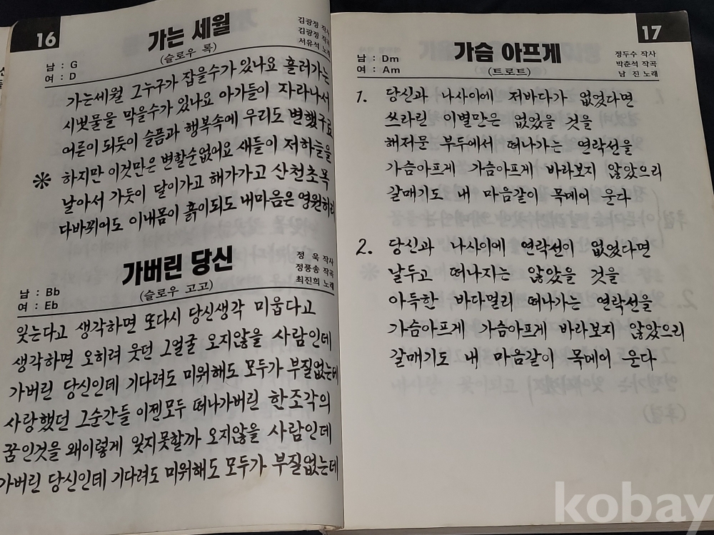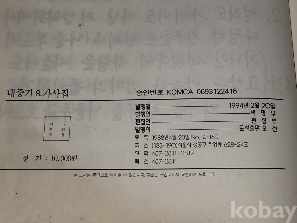 빈티지 세월 감이 느껴지는 1994년 발행 대중가요 가사집 고서적입니다.