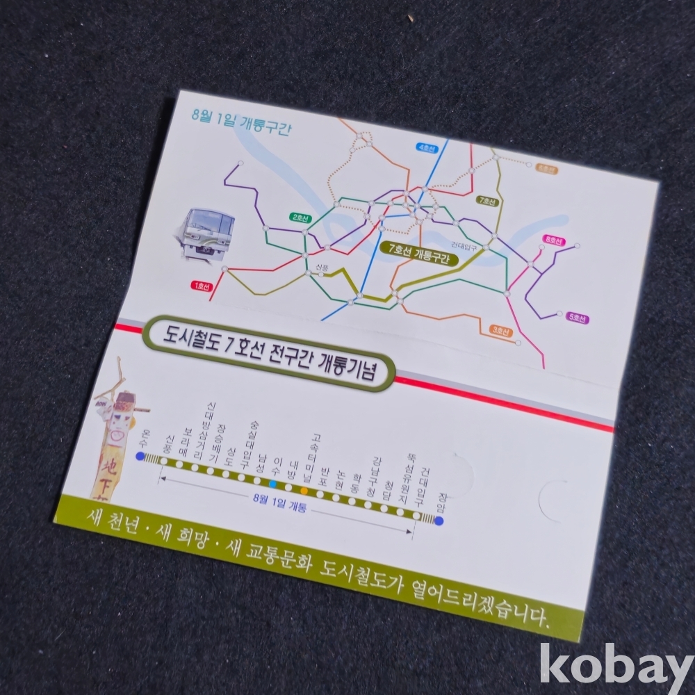 (((철도자료/지하철자료))) 도시철도 7호선 전구간 개통기념 (장암 ~ 온수) (2000)(미사용) (서울특별시 도시철도공사) (입장권없음)
