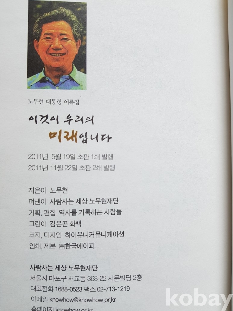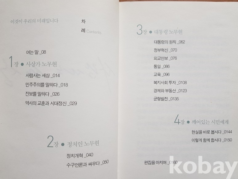 설명: 대한민국 제16대 대통령 노무현의 어록집 이것이 우리의 미래입니다. 라는 서적입니다.