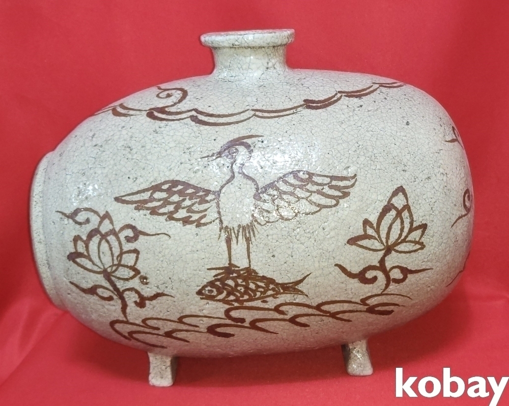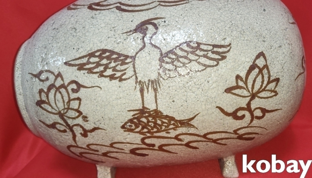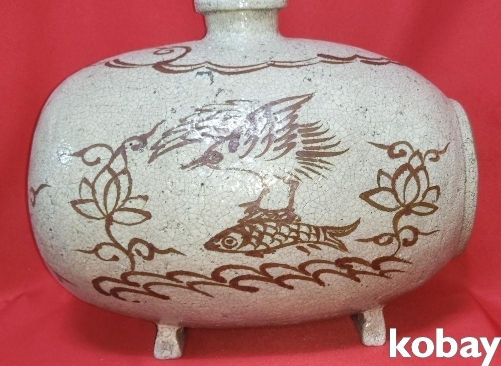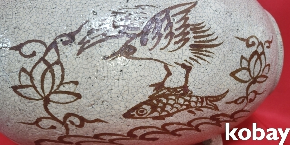 무지 높은 연대 보이는 철화 연꽃과 물고기를 사냥하는 새(鳥)도안 장군병입니다,