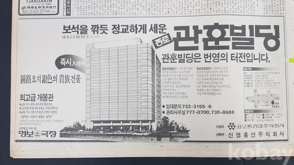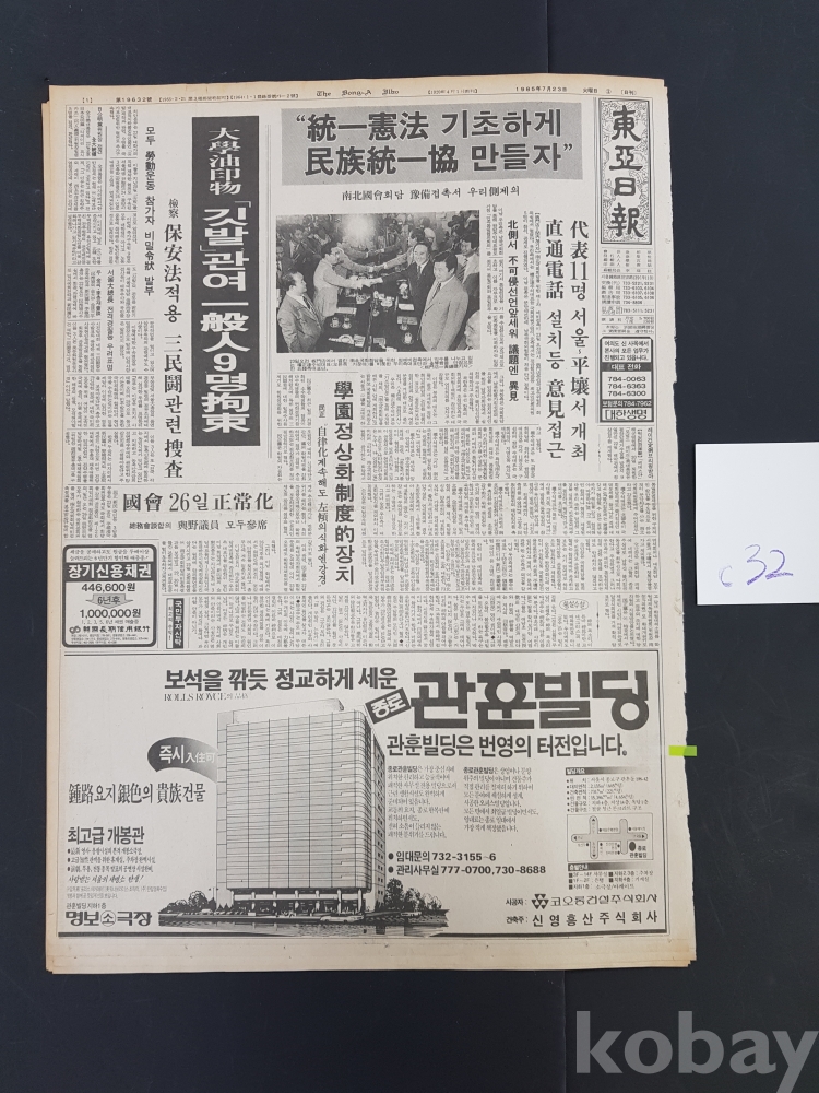**** 1985.07.23(동아일보)/관훈빌딩 임대문의 광고포함/약 12면
