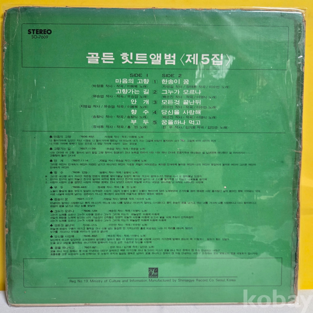 중고 LP인 관계로 취소나 반품도 불가합니다.
