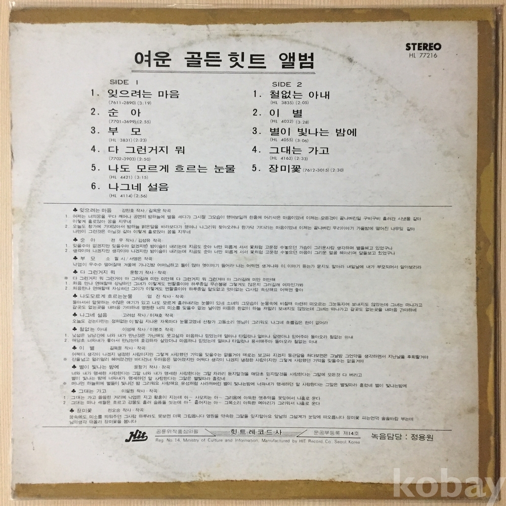 ⊙ 1977년 / 힛트레코드 - HL-77216