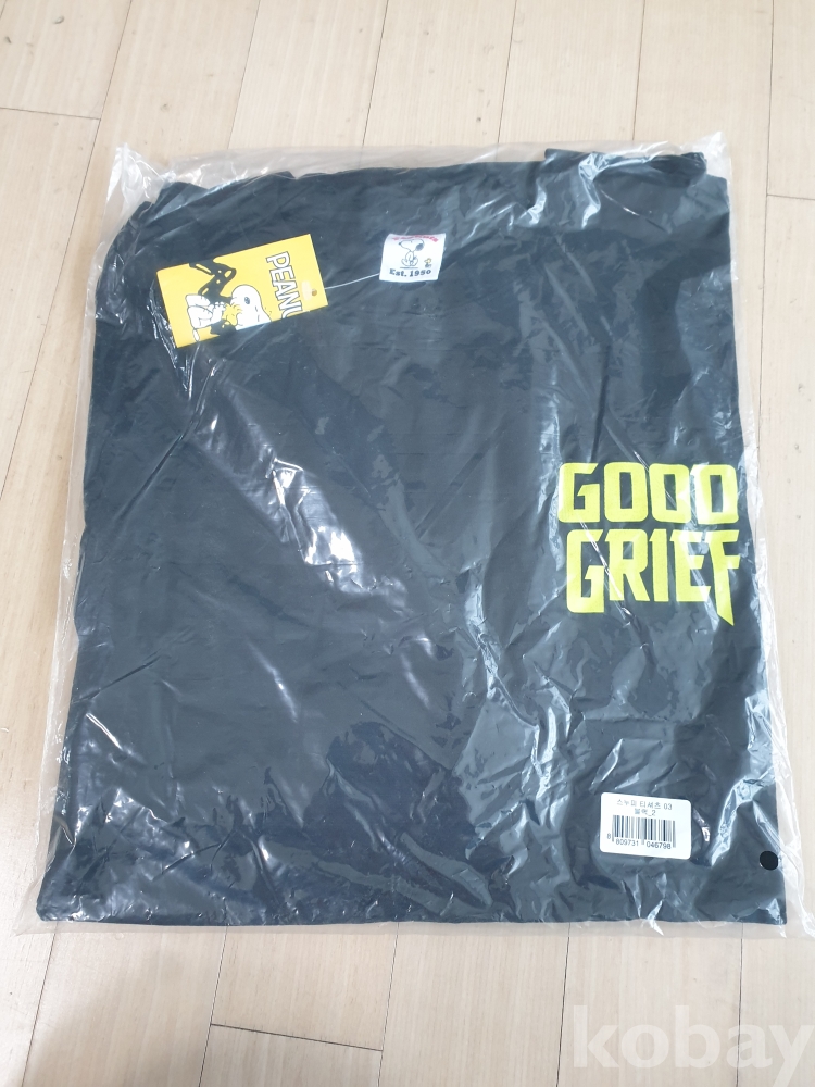 [천원경매] 12-134 스누피 검정색 반팔티(택 달린 미착용제품, 사이즈 105, 가슴단면 60cm, 길이 74cm)