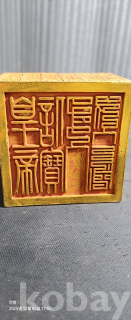 b-89.엄청무거운 사면에 글씨기있는 금도금 해태문양옥새