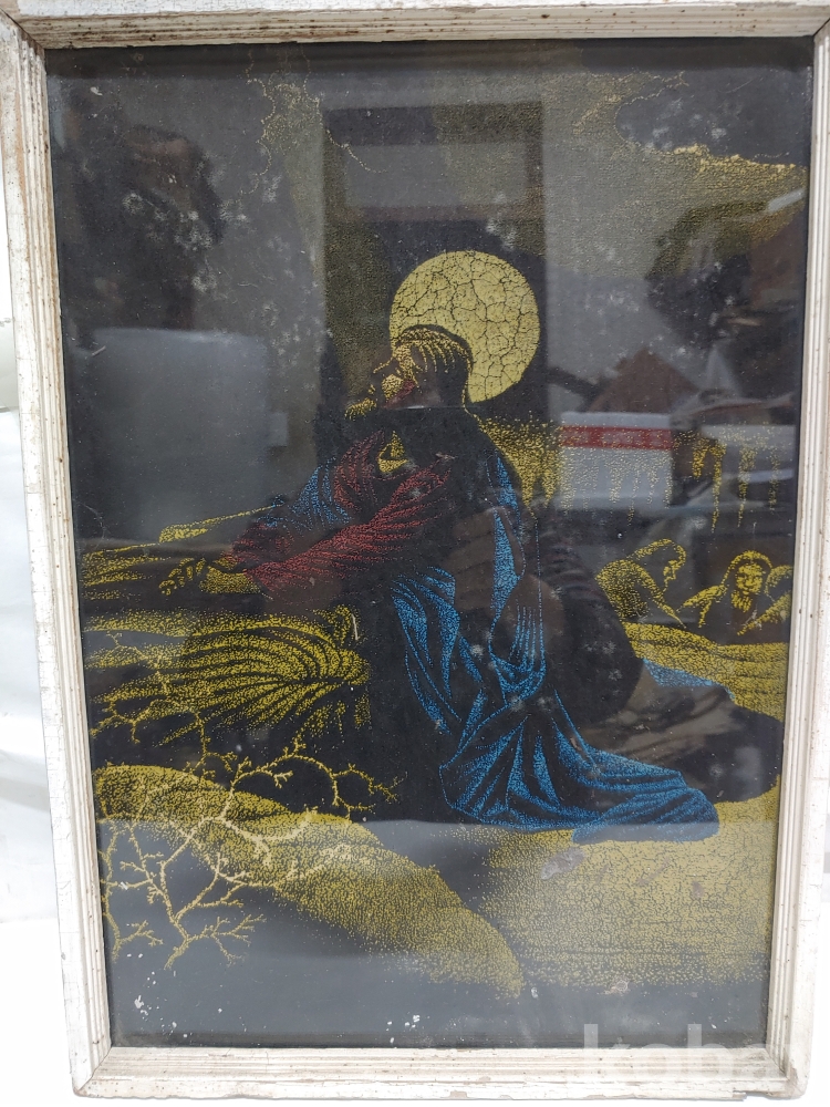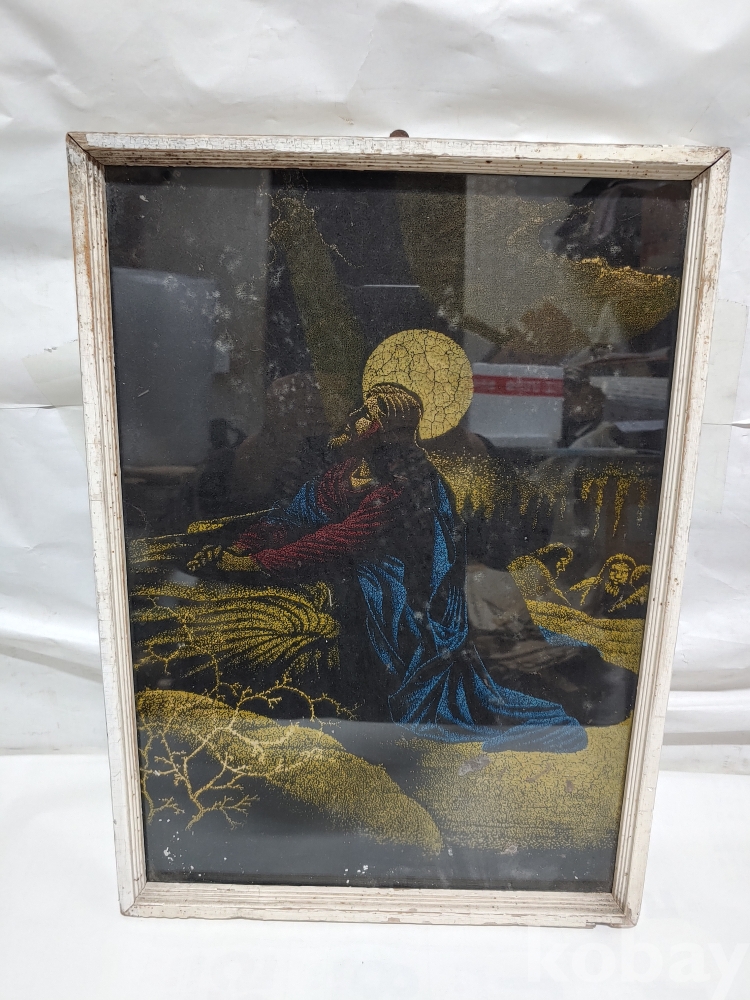 액자에 세월의 흔적으로 낡음이 많이 있음