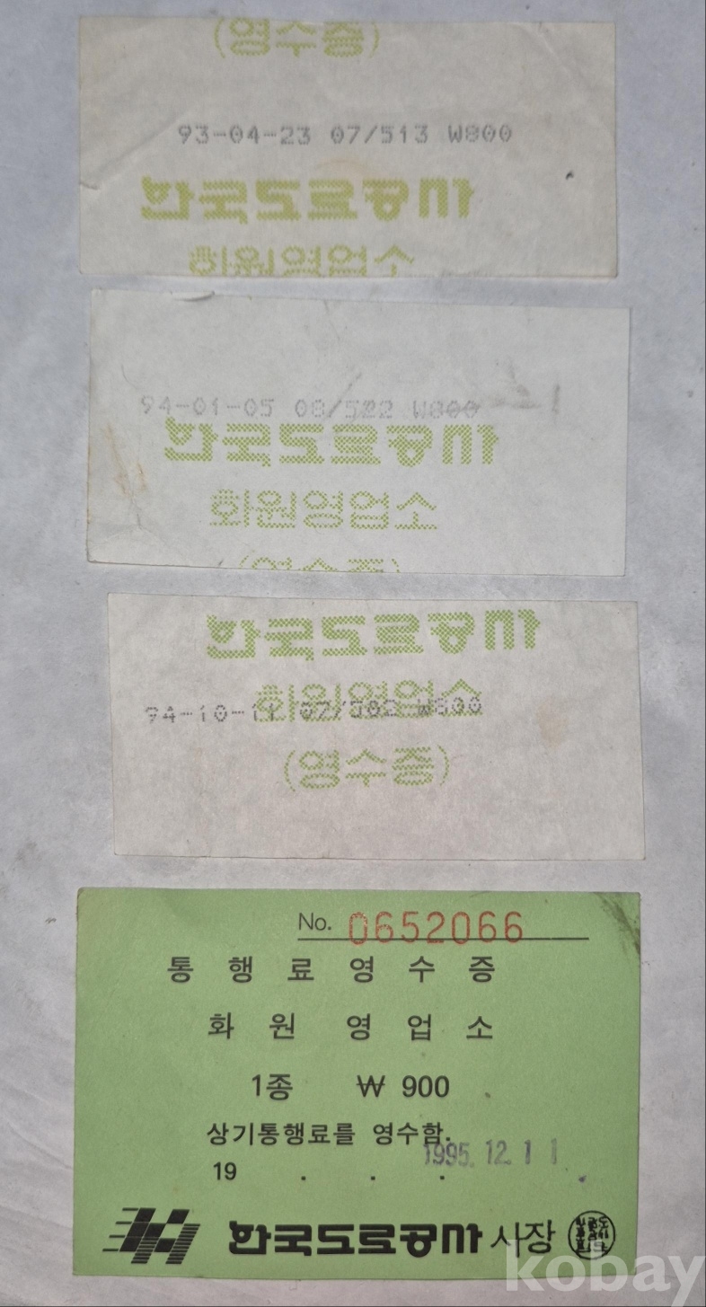 1990년대 한국도로공사 고속도로 영수증 4종입니다.