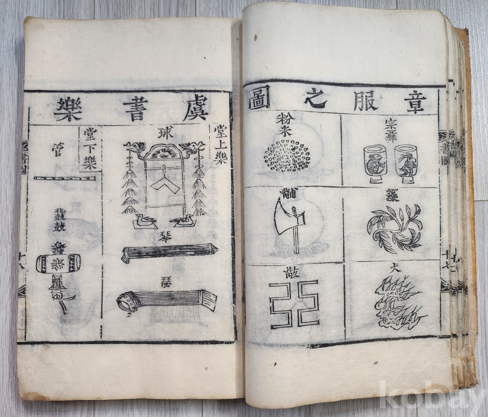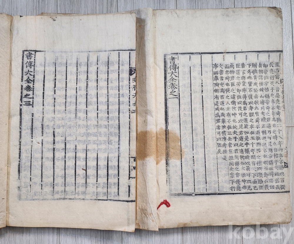 조선시대 간행된 서전 1권 3권 합2책 입니다 낙질본 입니다 1권에 도판이 28장 56페이지가 있습니다 도판 사진은 1권에서 일부 찍어 올린것 입니다 낙질 파본 없습니다