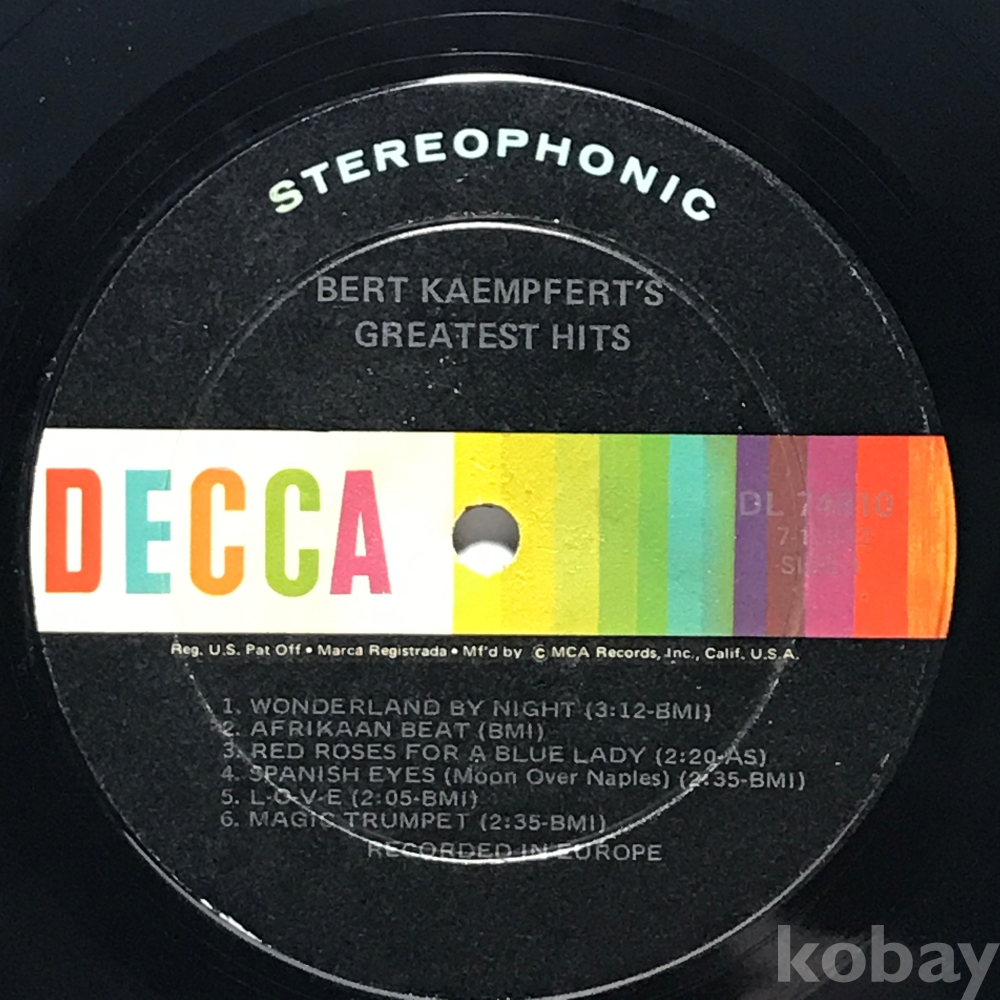 LP 83,623-153 BERT KAEMPFERT'S GREATEST HITS . 자켓 無 알판 VG+ 수입반
