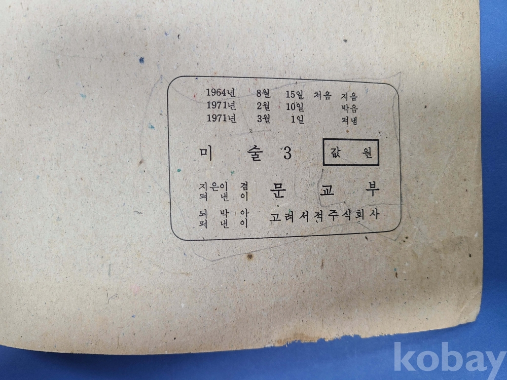 [교과서] 미술3*1971년/문교부 발행,낙서, 물먹음,찢어진부분 있음