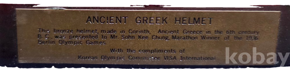 *1936독일 올림픽 마라톤 우승자에게 수여된,고대 기원전 6세기 그리스 코린트지역의 투구로