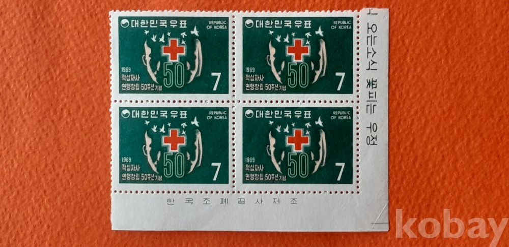 1969년 적십자사연맹 창립 50주년 기념 4매 명판 입니다.