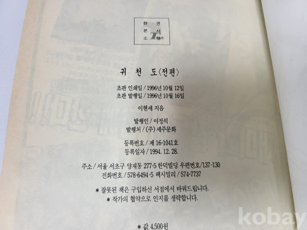 이현세 영상무협극화*전편*후편*1996년10월 초판 발행