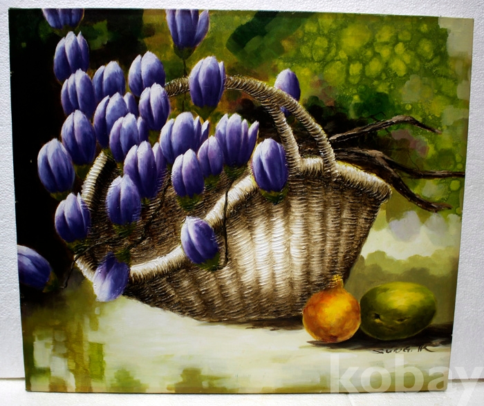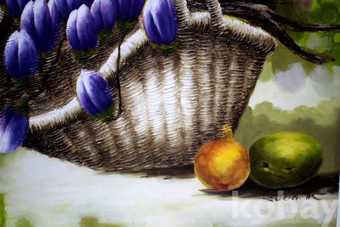 Sung HK의 유화 정물 - 바구니 속의 꽃과 과일 (10 F)