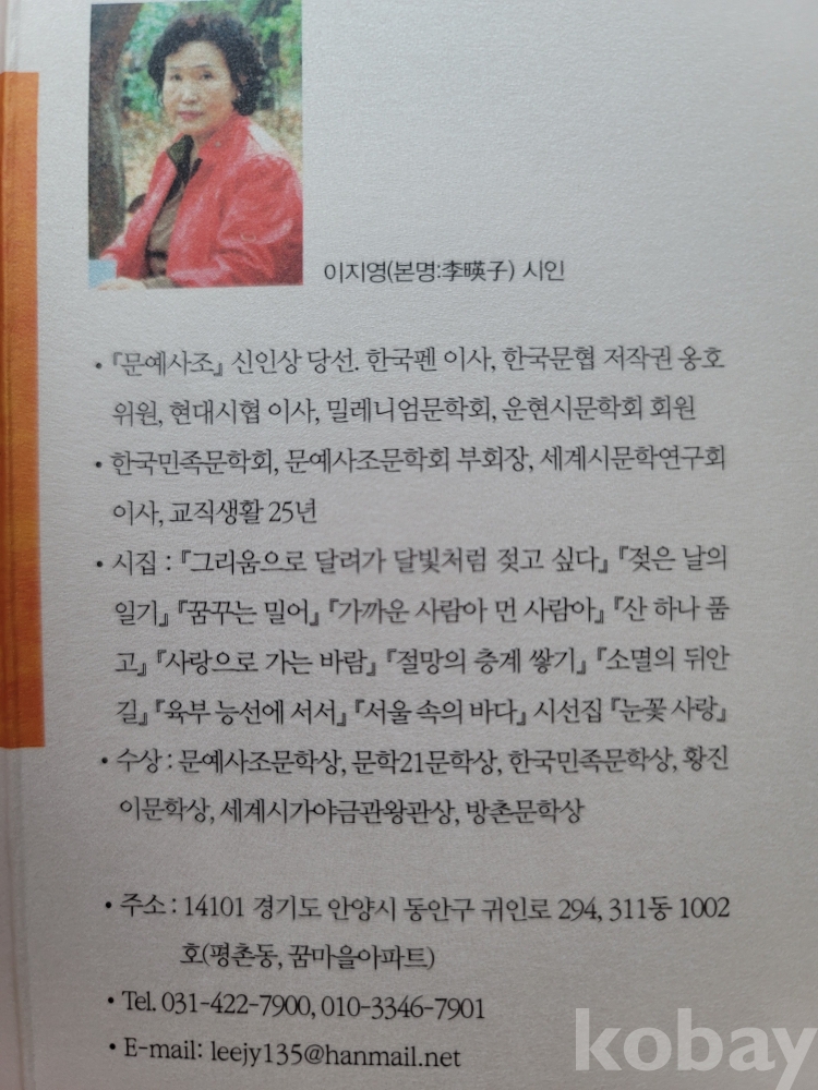 효성여자대학교 불어불문학과 졸업 & 25년간 교사로 재직했던 시인(李知暎).