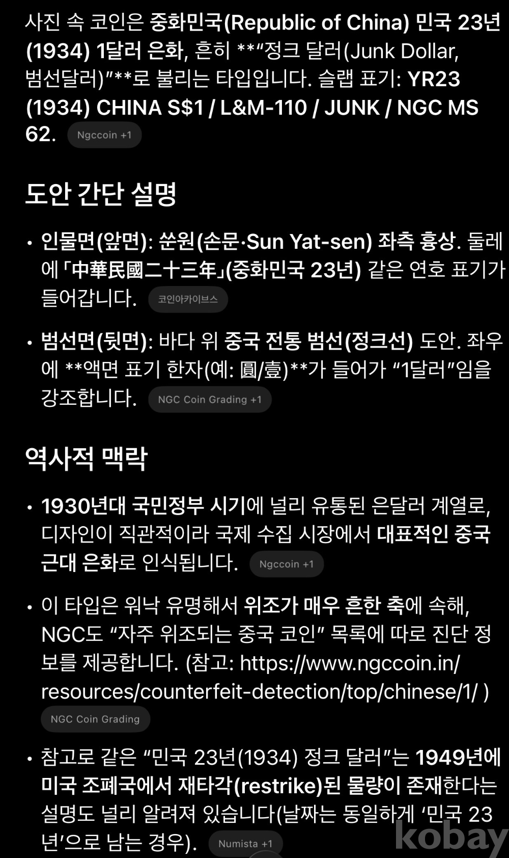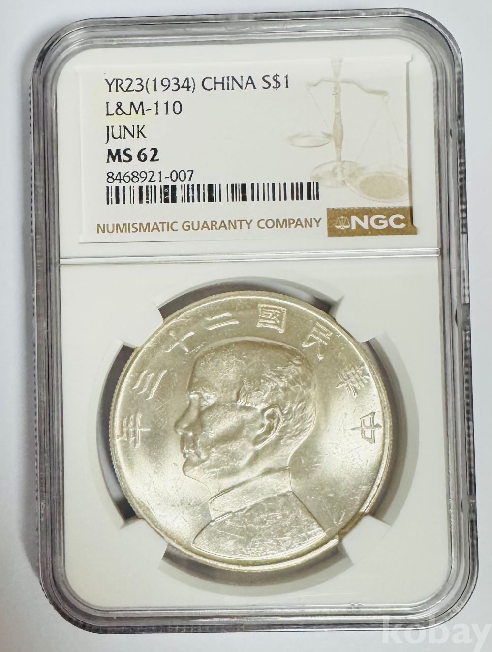 [중화민국 은화2] 1934년 중화민국 쑨원 “정크달러” NGC MS 62