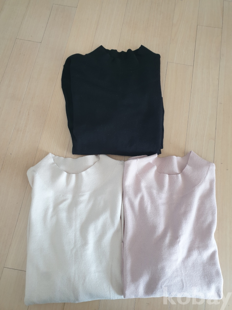 [천원경매] 12-114 여성 반목 칠부소매 니트 3종(아이보리, 핑크, 블랙, 상태 깨끗한 편, 가슴단면 49cm, 길이 60cm)