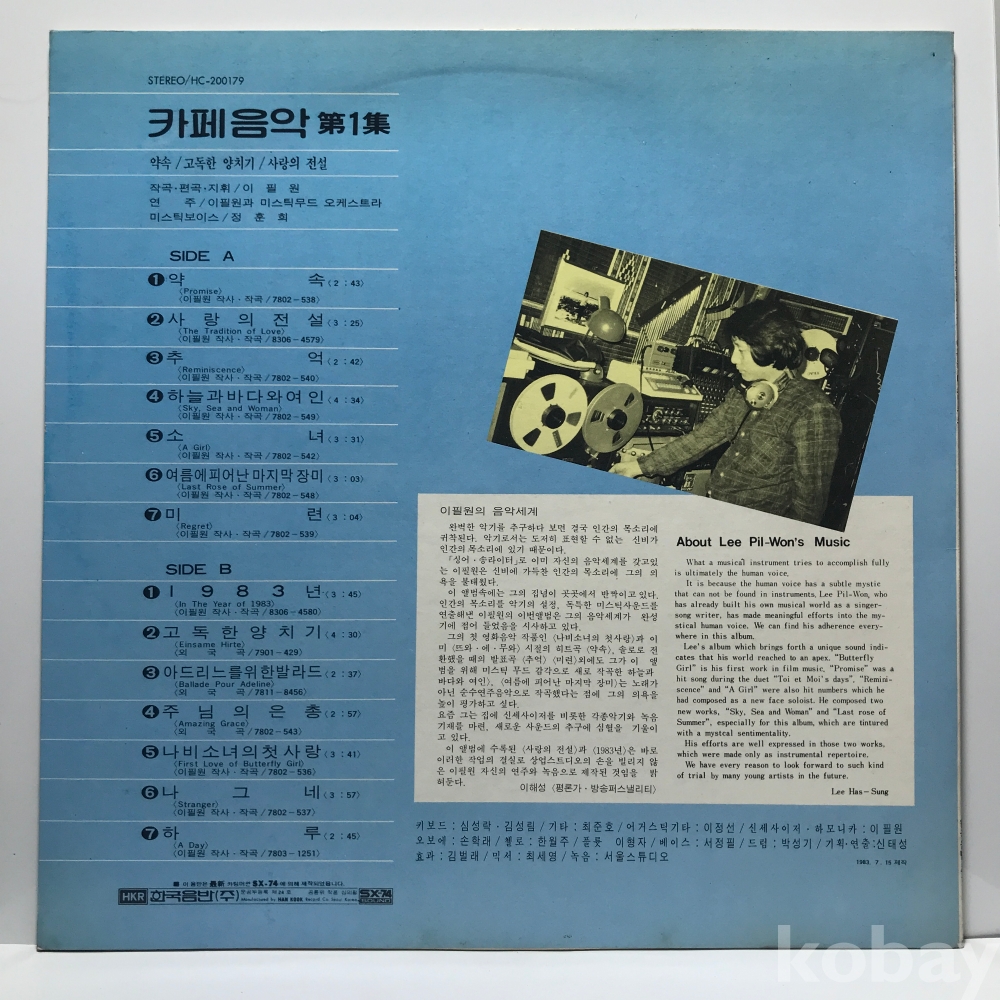LP 13,000-10 카페음악 1집 - 이필원 - 약속/ 고독한 양치기 83 한국 자켓 EX+ 알판 EX+