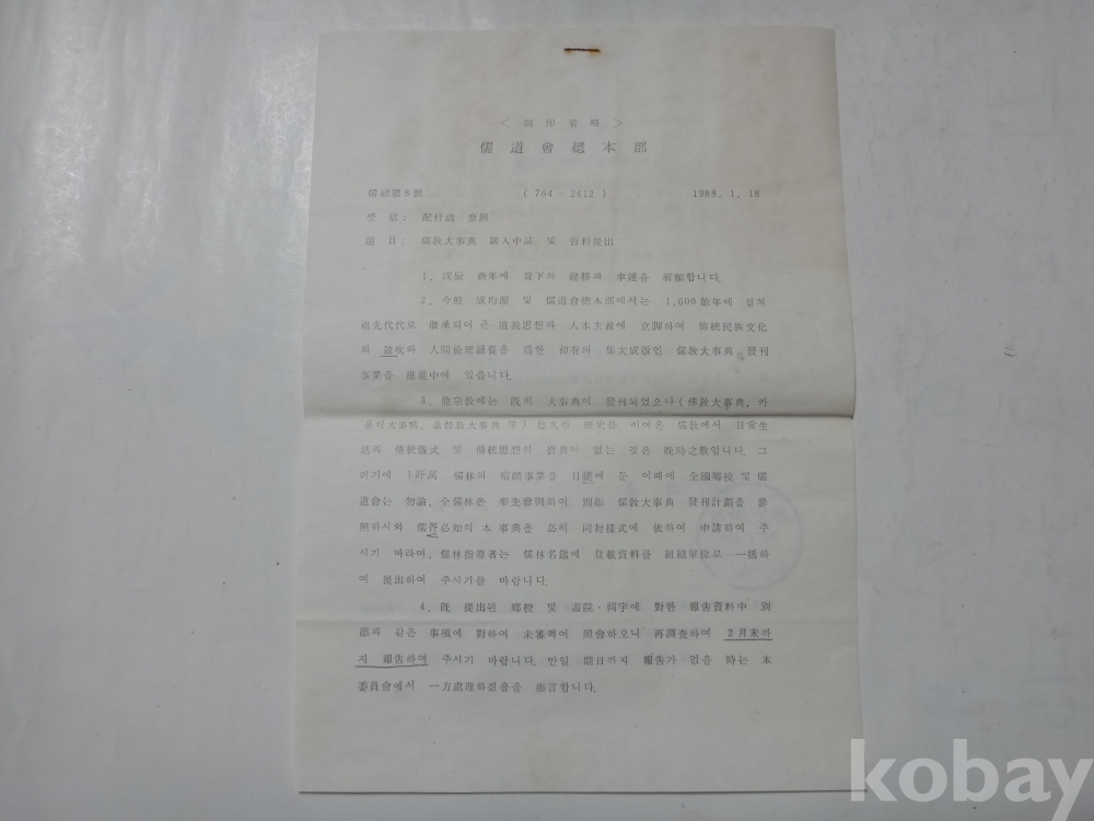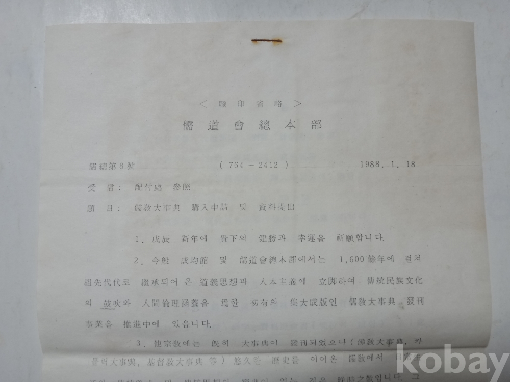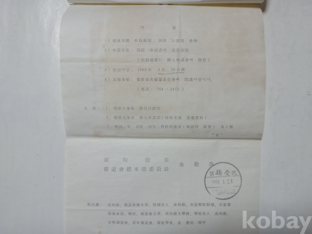 유교 대사전 구입신청 및 자료제출 안내 (1988년, 유도회총본부)