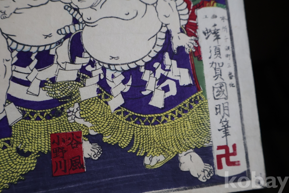 19세기 우키요에 목판화 스모 임니다 화가의 낙관을 가진 상태 조은 당대의 명작 임니다ㅣ 일본 스모 선수의 모습을 가진 고미술 목판화 임니다 Japanese woodblockprint from Utagawa Kuniaki II
